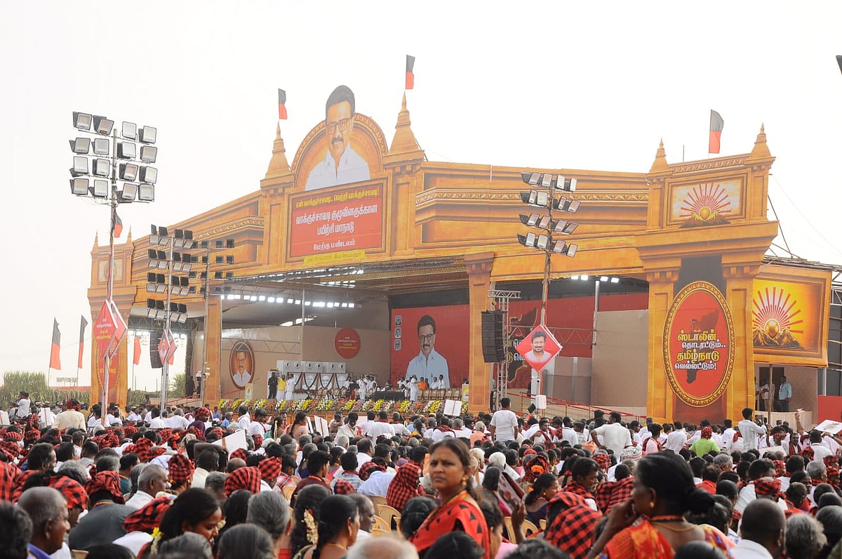 'என் வாக்குச் சாவடி.. வெற்றி வாக்குச்சாவடி என்ற பெயரில் தி.மு.க வாக்குச்சாவடி முகவர்களுக்கான மேற்கு மண்டல மாநாடு கோவை மாவட்டம் நீலாம்பூர் பகுதியில் நேற்று மாலை நடைபெற்றது. முதலமைச்சர் ஸ்டாலின் தலைமையில் நடைபெற்ற இந்த மாநாட்டில் தி.மு.க - வின் முக்கிய நிர்வாகிகள், வாக்குச்சாவடி முகவர்கள் பங்கேற்றனர்.