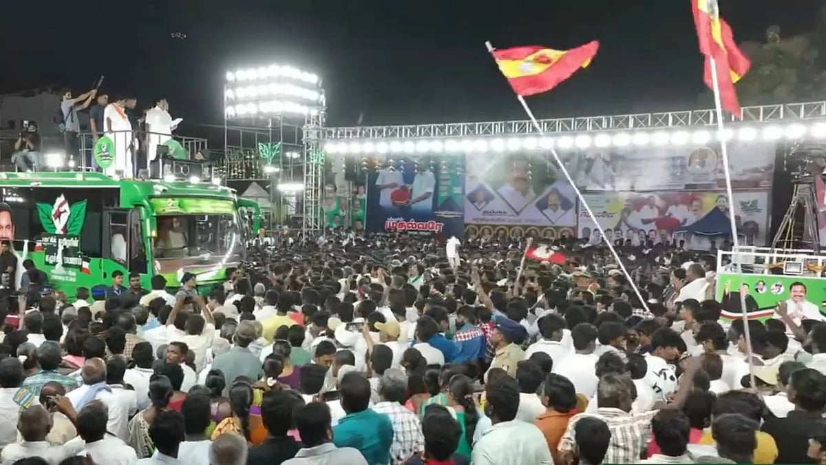அ.தி.மு.க பிரச்சாரக் கூட்டத்தில் தவெக கொடியினைப் பிடித்தபடி சிலர் நின்று கொண்டிருந்தனர். அதைப் பார்த்த எடப்பாடி பழனிசாமி,