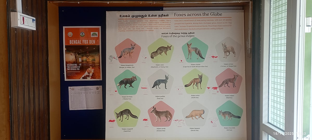 வங்குநரி அறிவியல் வழக்காறு ஆய்வு மையத்தை பார்வையிட்டோம். அங்கு நரிகளின் வகைகள், அதன் வாழ்விட அமைப்புகள், எலும்புக் கூடு அமைப்பு மற்றும் இயற்கை சூழலில் காண்பது போன்ற தத்ரூபமான மாதிரிகள் ஆகியவை உள்ளடங்கிய நவீன புரொஜெக்டர் வசதியுடன், அதுகுறித்து விழிப்புணர்வு மற்றும் பயிற்சி அளிக்க தேவையான அனைத்து வசதிகளும் அமைந்துள்ளன.