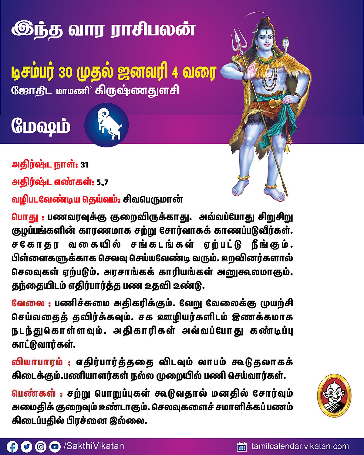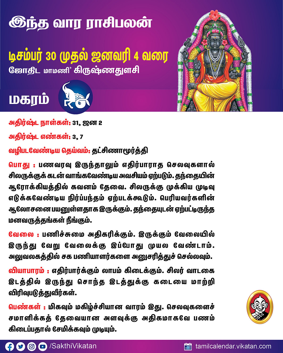 பஞ்சாங்கக் குறிப்புகள் டிசம்பர் 22.12.25 முதல் 28.12.25 வரை #VikatanPhotoCards