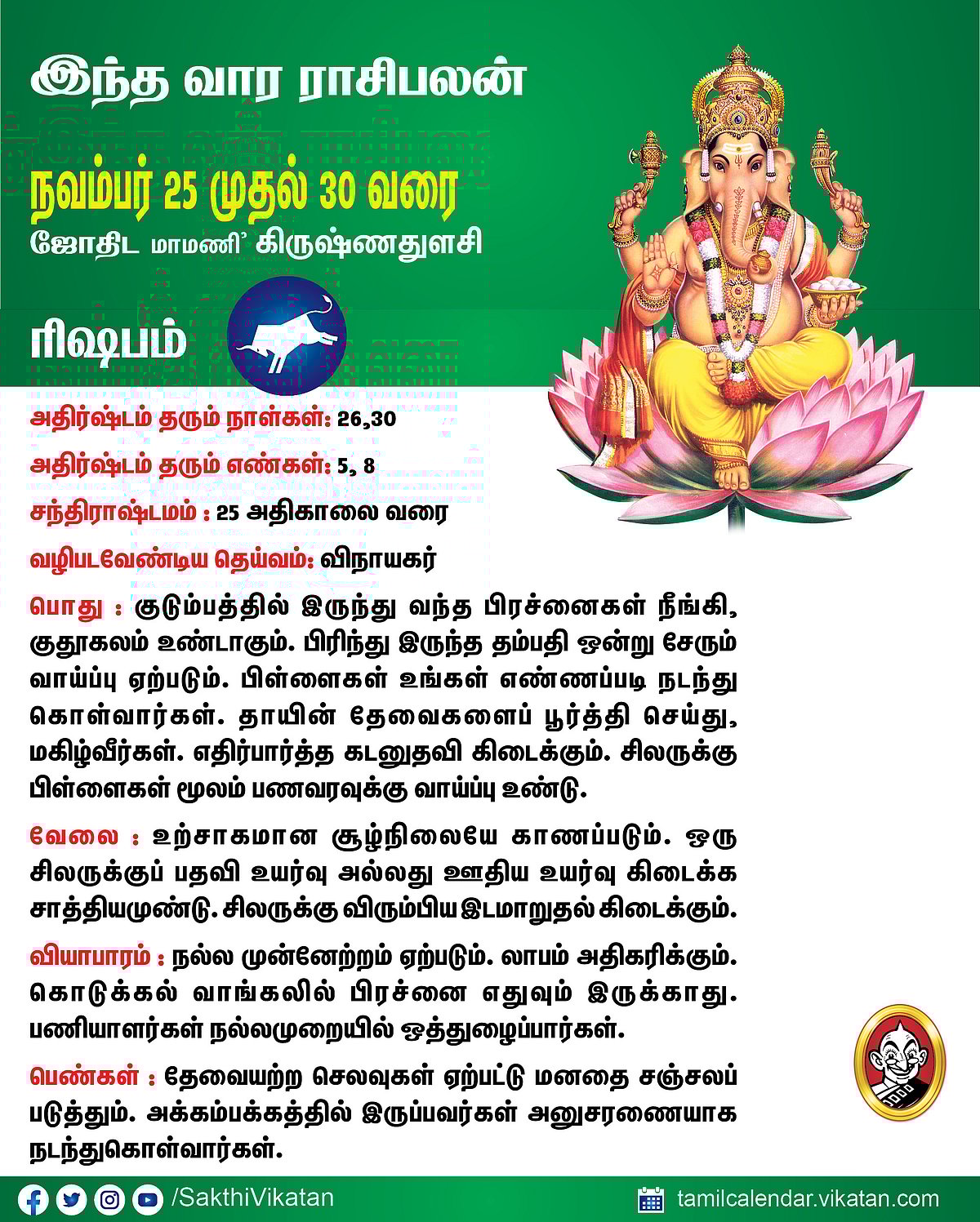 பஞ்சாங்கக் குறிப்புகள் நவம்பர் 17 முதல் 23 வரை #VikatanPhotoCards