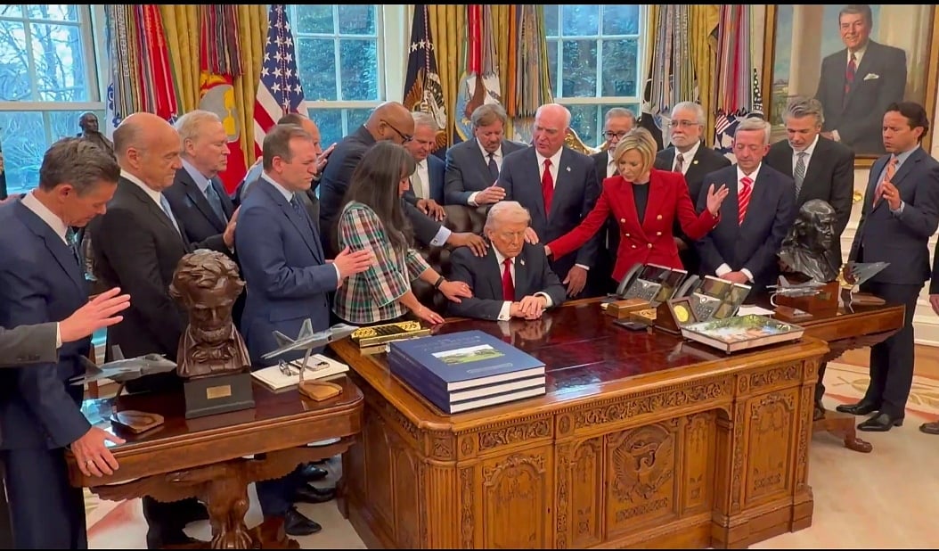 ஈரான் போர்; வெள்ளை மாளிகையில் சிறப்பு பிரார்த்தனை செய்த அதிபர் ட்ரம்ப் - புகைப்படங்கள் வைரல்!