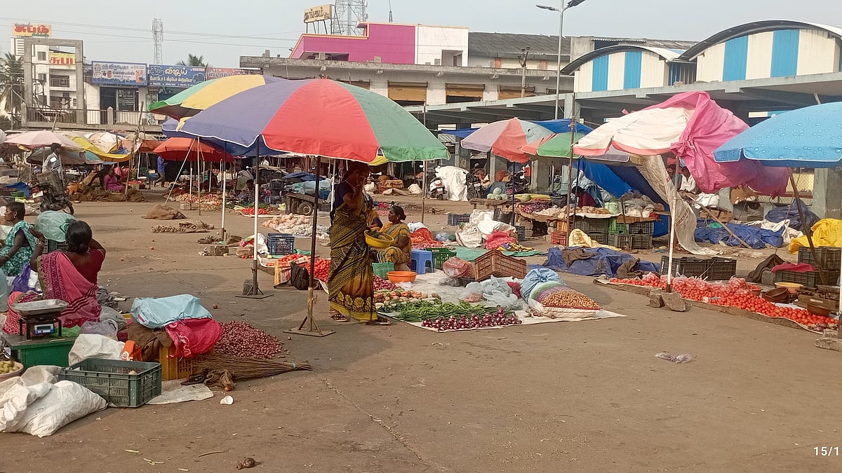 இது குறித்து புதிய காய்கறிச் சந்தைக்கு அருகில் கடைப்போட்டுள்ள வியாபாரிகளிடம் விசாரித்தோம். நம்மிடம் பேசியவர்கள், ``தலைமுறை தலைமுறையாய் இங்குதான் கடைப்போட்டு வியாபாரம் செய்து வருகிறோம். ஆனால் தற்போது இங்கு கட்டப்பட்டிருக்கும் சந்தையை ஏதோ ஒரு புதிய நபருக்கு ஏலத்தில் விட்டிருக்கிறார்கள். அந்த தனி நபர் அதிக வாடகை கேட்கிறார். எங்களால் சமாளிக்க முடியாது என்பதால், இங்கு சாலையில் கடைப்போட்டு எங்கள் வாழ்க்கையை ஓட்டி வருகிறோம்" என்றனர்.