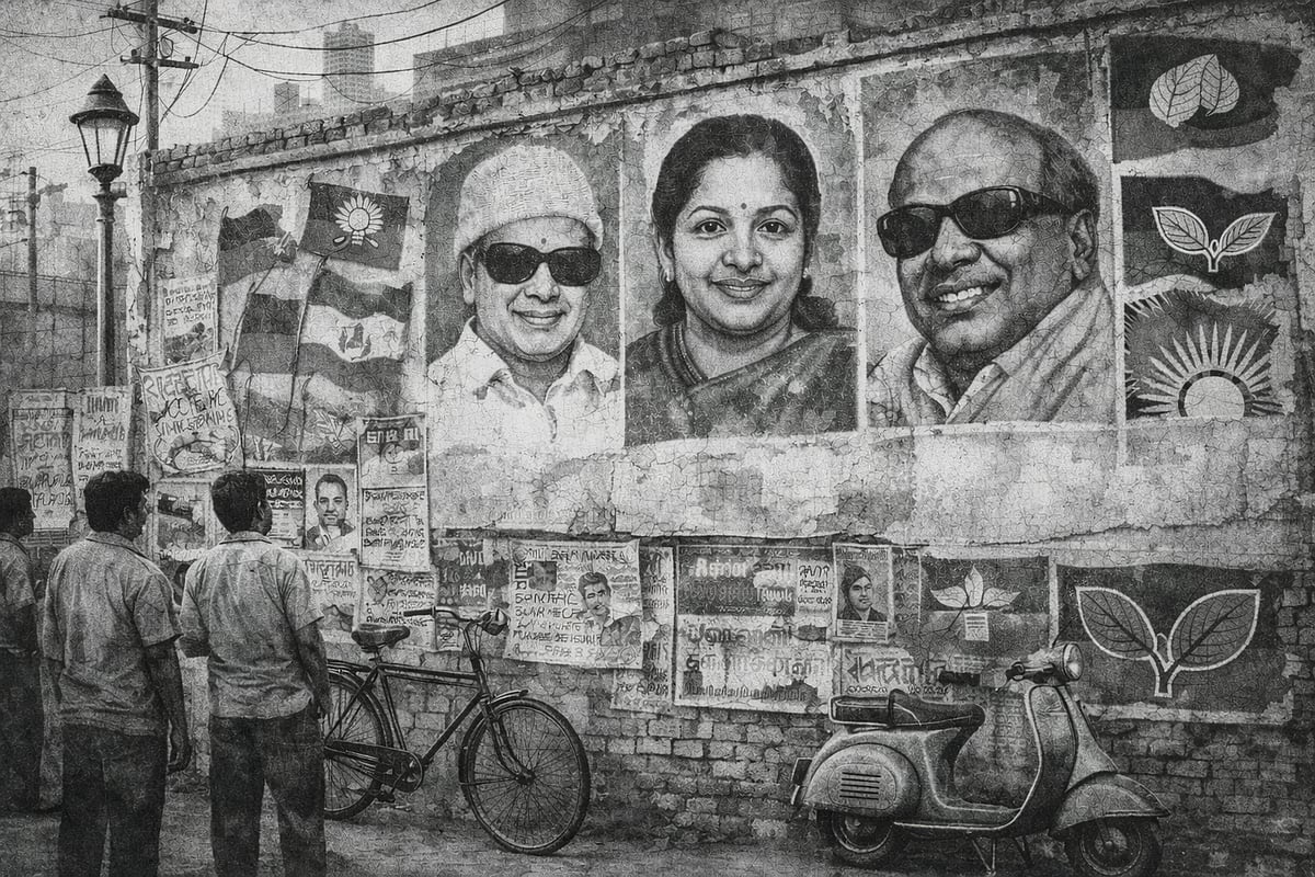 1967 பிப்ரவரி மாத சட்டமன்றத் தேர்தலில், காங்கிரஸ் ஆட்சிக்கு முடிவு கட்டி, திமுக ஆட்சியைப் பிடித்தபோது, அரசியல் அடையாளம் என்பதே சின்னங்களோடு ஒன்றாகிவிட்டது. வாக்குச்சாவடிக்குச் செல்லும் முன்பே, மக்கள் சுவர்களில் பார்த்தே கட்சிகளை அடையாளம் கண்டார்கள். அந்த வகையில் அரசியல், முதலில் காட்சியாக மாறியது. பின்னர்தான் அது வார்த்தைகளாக மாறியது.