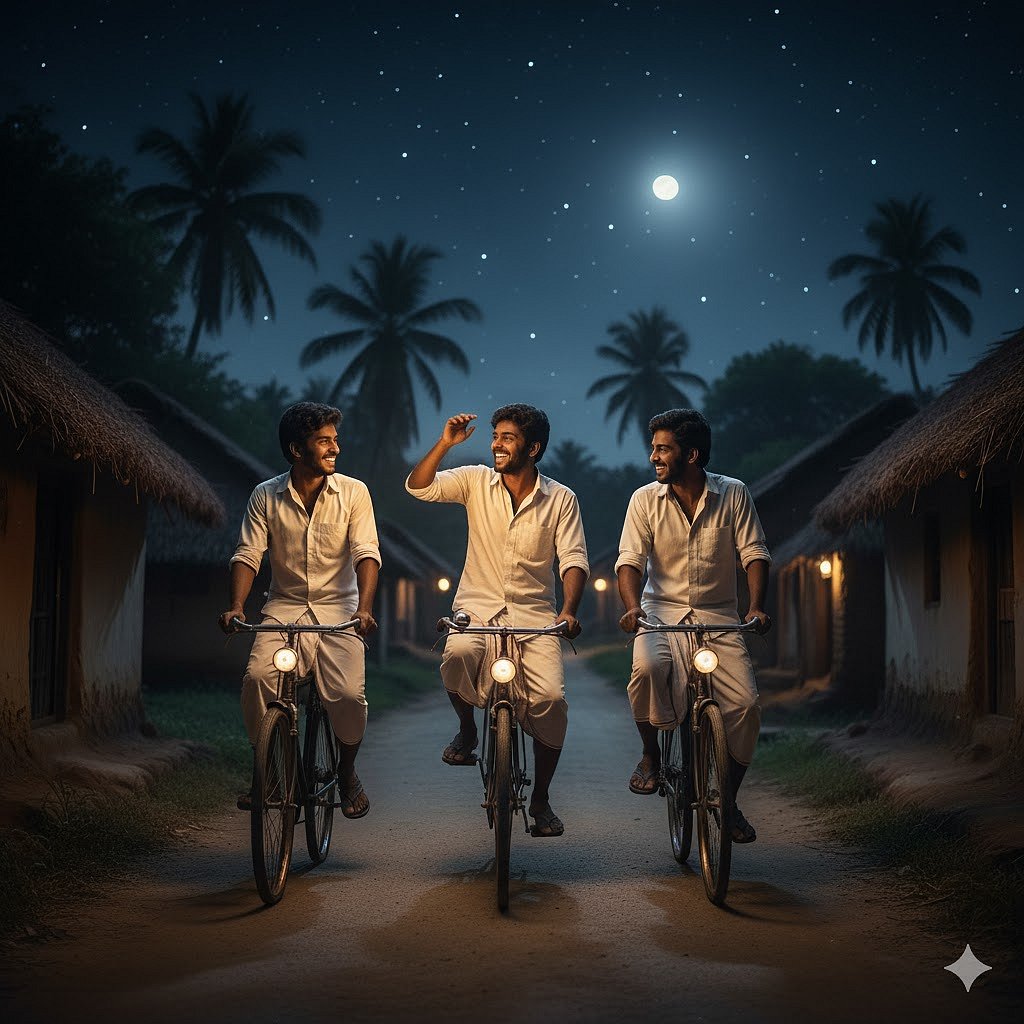 எல்லாம் கேரியர் வைத்த சைக்கிள்கள்தான். எல்லோருக்கும் நன்றாகச் சைக்கிள் ஓட்டத் தெரியுமென்பதால் ஒருவர் மாற்றி ஒருவர் மிதிக்க வசதியாக, கேரியர் வைத்த சைக்கிள்களை எடுத்துக் கொள்வோம். ஒன்றிரண்டு பேர் மட்டுமே சொந்த சைக்கிள் வைத்திருந்தோம். எனவே ஒன்றிரண்டை வாடகைக்கு எடுத்துக் கொள்வோம்.