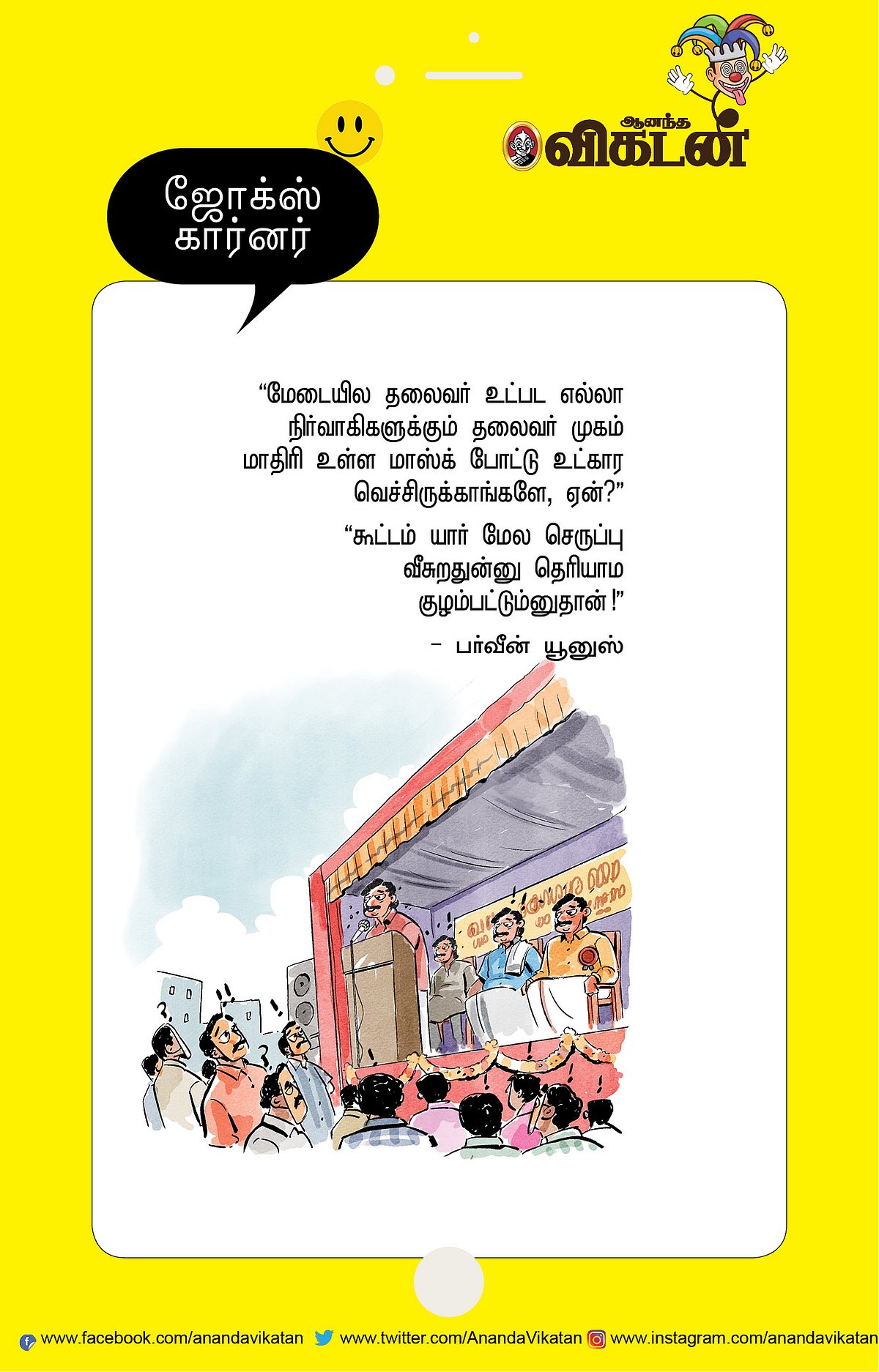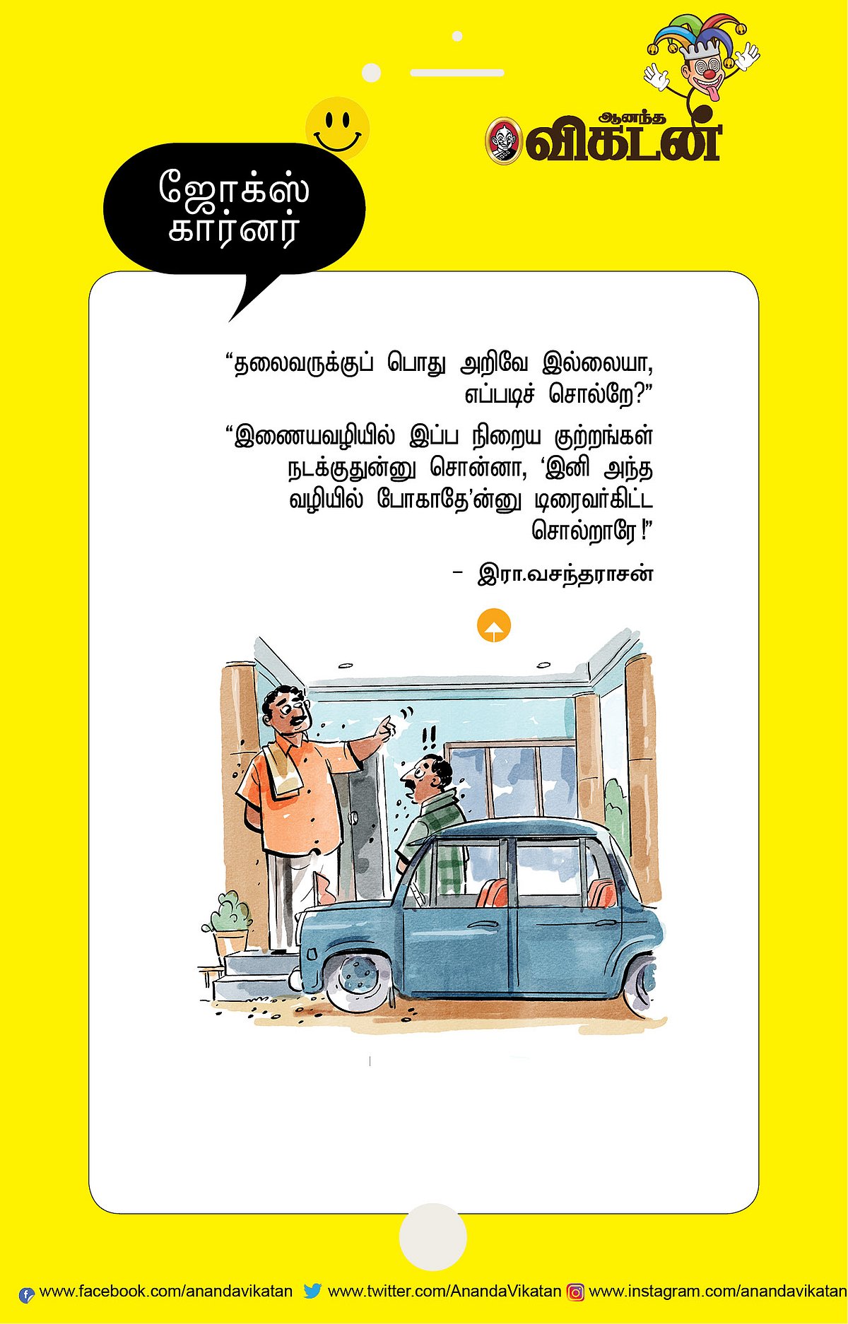 ஜோக்குகளை மின்னஞ்சலில் அனுப்ப jokes@vikatan.comஜோக்ஸ்ஜோக்ஸ்ஜோக்ஸ்ஜோக்ஸ் மேலும் பார்க்க
