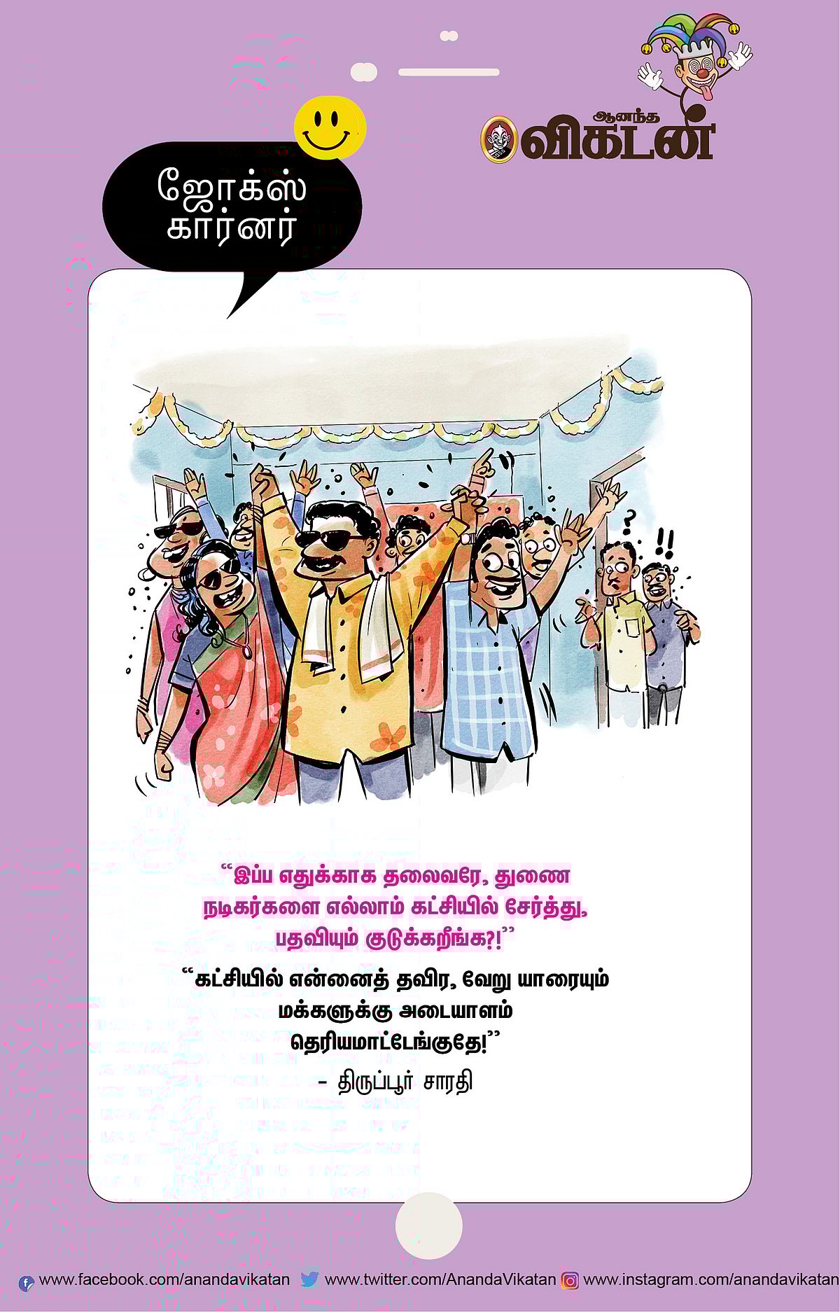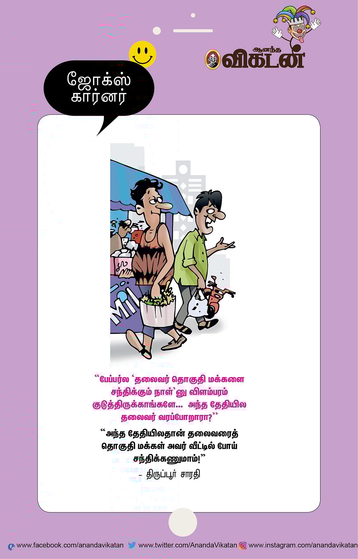ஓவியங்கள்: எம்.ஜெயசூர்யாஜோக்குகளை மின்னஞ்சலில் அனுப்ப jokes@vikatan.com மேலும் பார்க்க