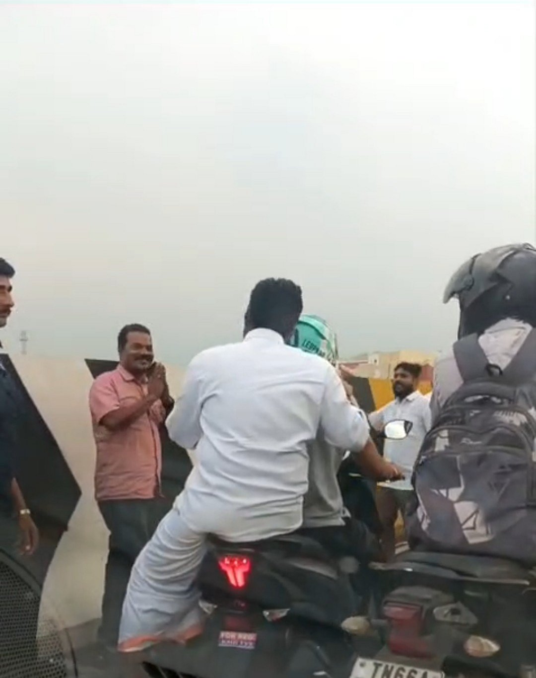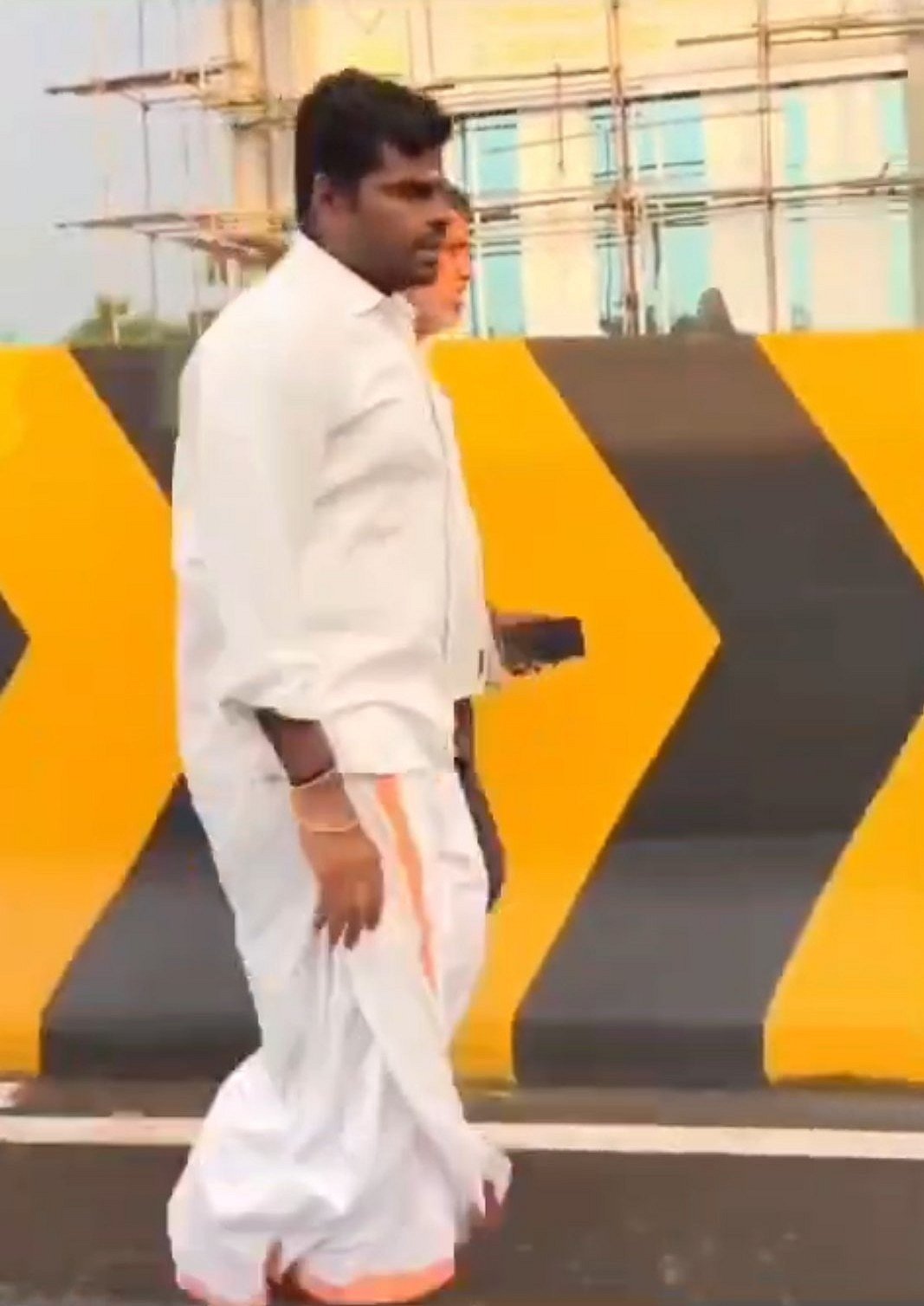 ஜிடி மேம்பாலத்தில் நிலவிய கடுமையான போக்குவரத்தில் அண்ணாமலை சிக்கிவிட்டார். ஒருகட்டத்தில் அவர் நடந்தும், அந்த வழியே பைக்கில் வந்தவர்களின் உதவியை கேட்டும் ஆர்ப்பாட்டத்துக்கு வந்து சேர்ந்தார்.