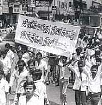 இந்தி எதிர்ப்புப் போராட்டம் தொடங்கியதிலிருந்து நானும் தம்பியும் அதில் கலந்துகொள்வோம். தம்பி சண்முகம் தலையை மொட்டையடித்து, இந்திக்கு கொள்ளி வைக்கும் போராட்டத்தை நடத்தினார். அதுவரை இந்திக்கு எதிராக ஐந்து பேர் தீக்குளித்து உயிர் துறந்திருந்தனர்.