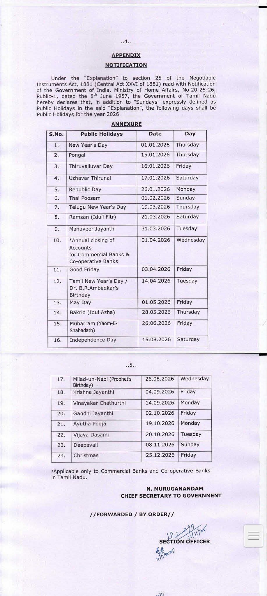 ஆனால் என்ன காரணமோ முதல்வர் மு.க. ஸ்டாலின் அதில் ஆர்வம் காட்டவில்லை. இந்த நிலையில் நடப்பு ஆட்சிக் காலத்தின் கடைசி ஆண்டான இந்த ஆண்டிலாவது அந்த அறிவிப்பைத் தருவார் என பலரும் எதிர்பார்த்த நிலையில் 2026-ம் ஆண்டுக்கான விடுமுறை தினப் பட்டியலும் தற்போது வெளியாகி அதில் மாற்றம் எதுவும் இல்லை.