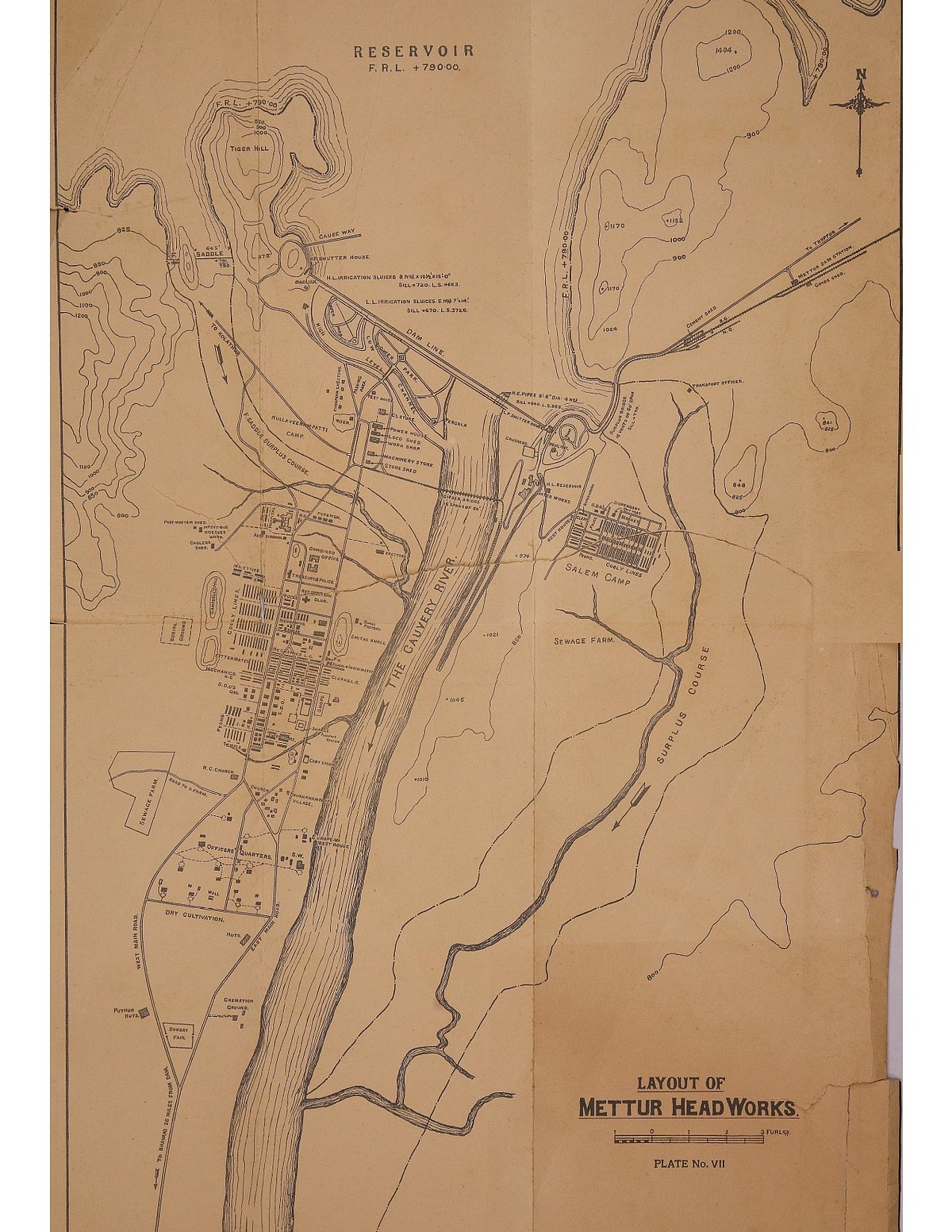 முதலில் கர்னல் எல்லீஸ் சுட்டிக்காட்டிய “SITE-D” அருகே முகாம்கள், அலுவலகங்கள், வீடுகள் அமைப்பதற்கான வரைபடங்கள் தயாரிக்கப்பட்டிருந்தது. ஆனால், பாறை தன்மை மற்றும் வெள்ள அபாயம் காரணமாக இடம் மாற்றப்பட்டதால், அந்தப் பணிகள் நிராகரிக்கப்பட்டன.