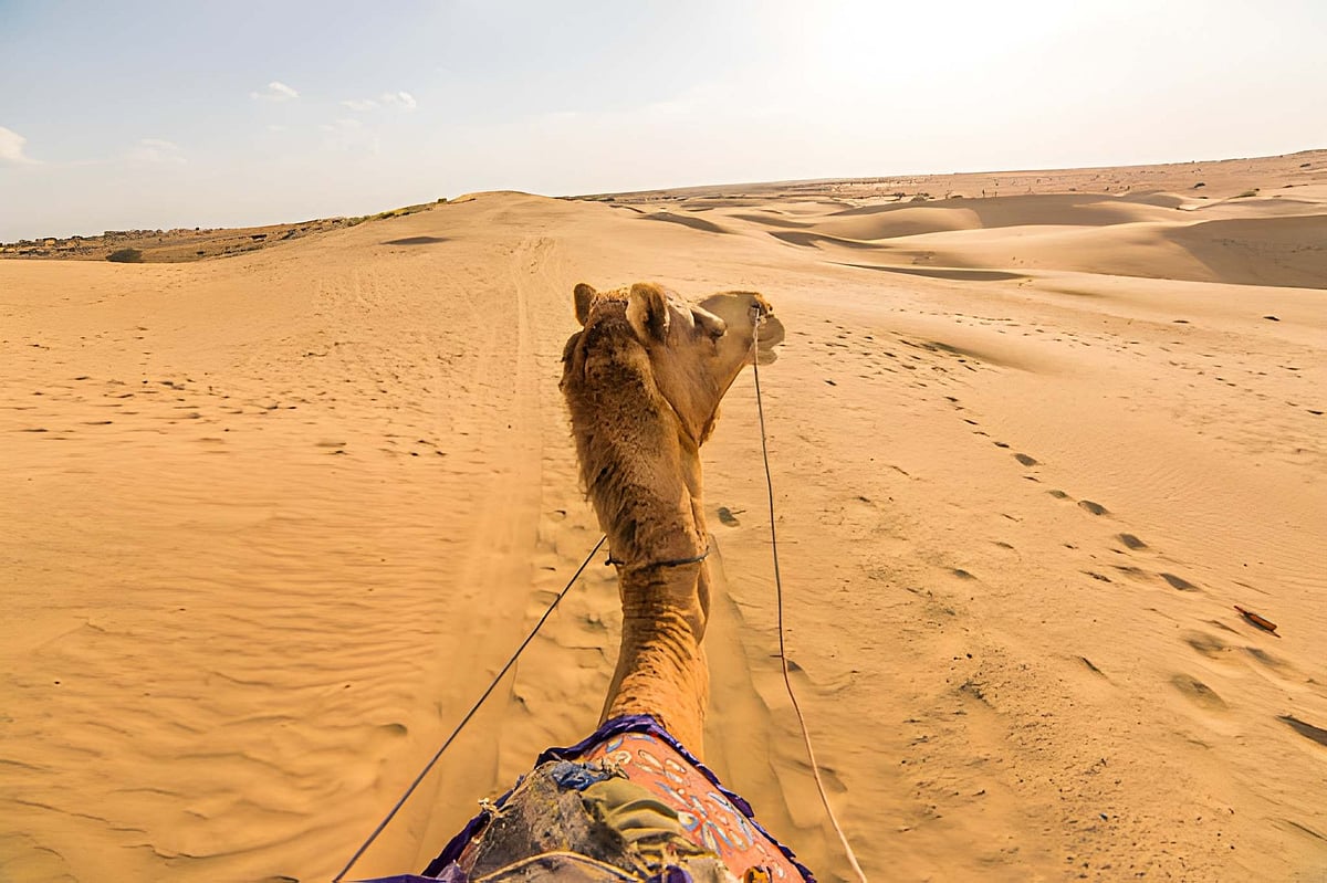 அப்படி உருவான பாலைவனங்களில் ஒன்று ராஜஸ்தான் மாநிலத்தின் ஜெய்சால்மர் நகரில் இருந்து தென்மேற்கே சுமார் 40 கி.மீ தொலைவில் உள்ள சாம் பாலைவனம் (சாம் மணல் திட்டுகள் - Sam Sand Dunes - தார் பாலைவனத்தின் ஒரு பகுதி). மிகவும் பிரபலமான சுற்றுலாத் தலமாக அறியப்படும் இந்தப் பகுதியைப் பிரிக்கும் சாலையின் ஒரு பக்கத்தில், பாலைவனத்தைப் பசுமைத் தளமாக மாற்றும் முயற்சியிலும், சுற்றுலாப் பயணிகளை ஈர்க்கும் வகையிலும் ஏற்படுத்தப்பட்ட கட்டிடங்கள் அமைந்திருக்கின்றன. சாலையின் அந்தப் பக்கம், அலங்கரிக்கப்பட்ட, சுற்றுலாப் பயணிகளைக் கவரும் வகையில் நிறுத்திவைக்கப்பட்டிருக்கும் ஒட்டகங்கள். அவற்றை இயக்க பாரம்பரிய உடையில் வாழ்வாதாரத்துக்காகக் காத்திருக்கும் மக்கள் என இப்படியாக மாறியிருக்கிறது அந்த சாம்.