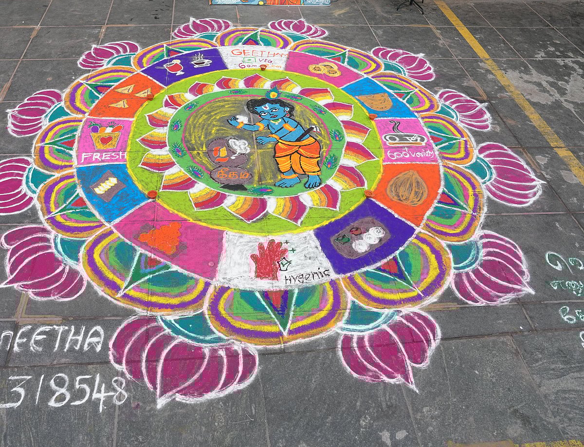 நீங்கள் போடும் கோலத்துக்குப் பரிசு வேண்டுமா? - சென்னையிலிருக்கும் கீதம் உணவகக் கிளைகளுக்குப் போங்க!
