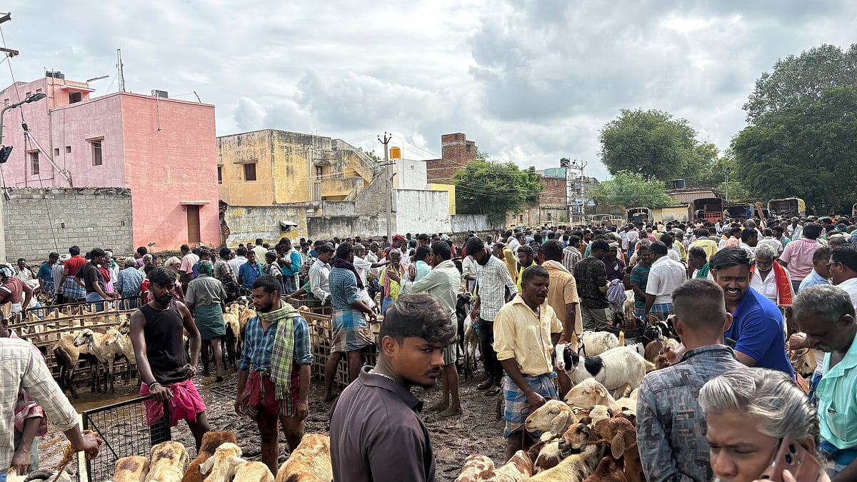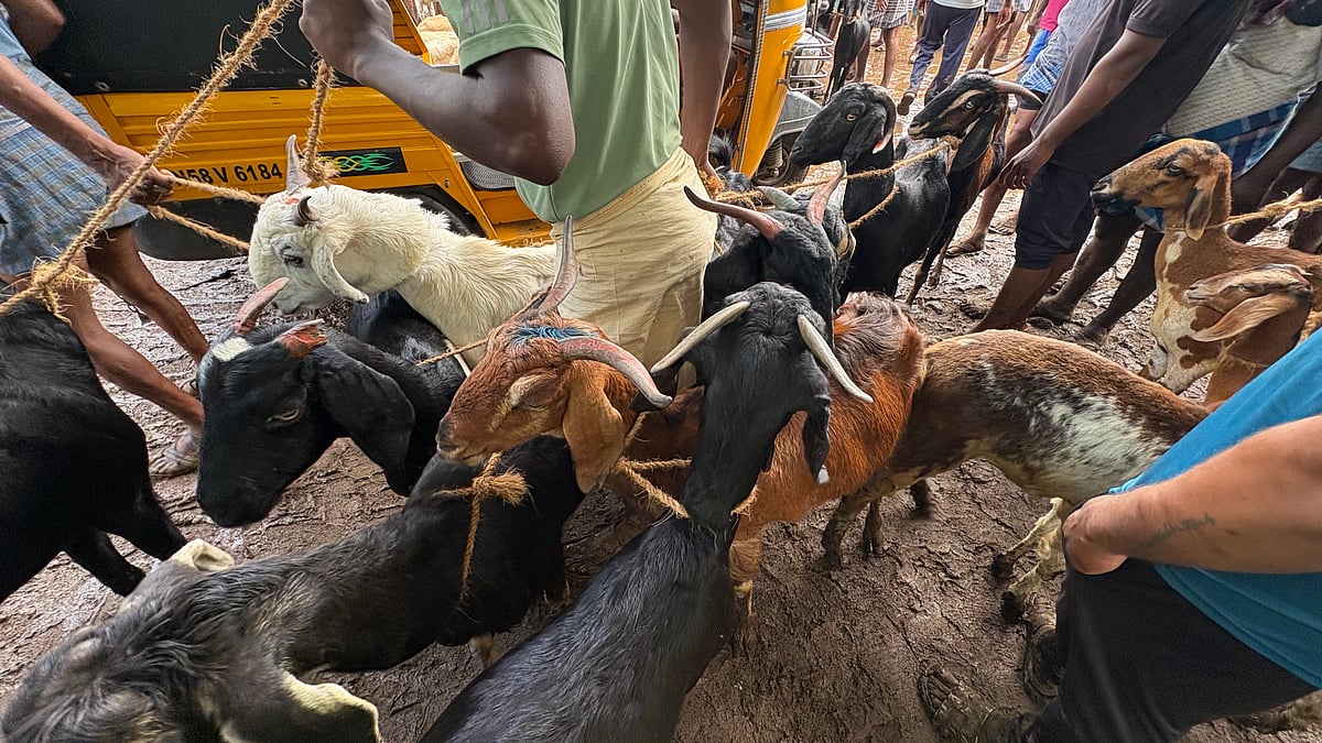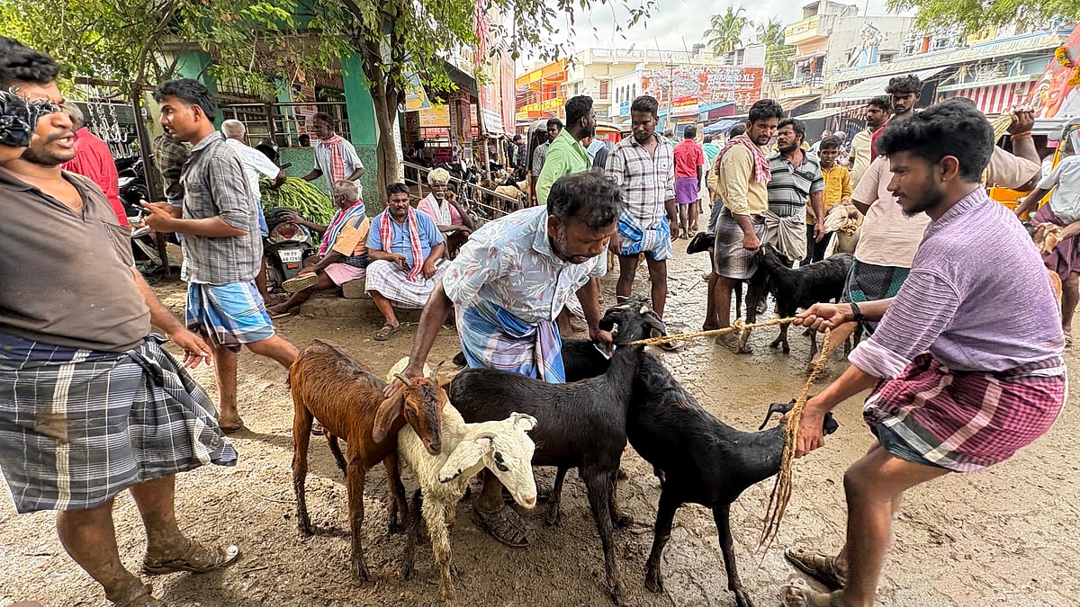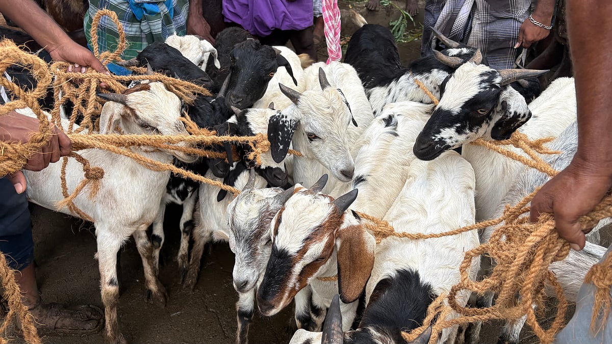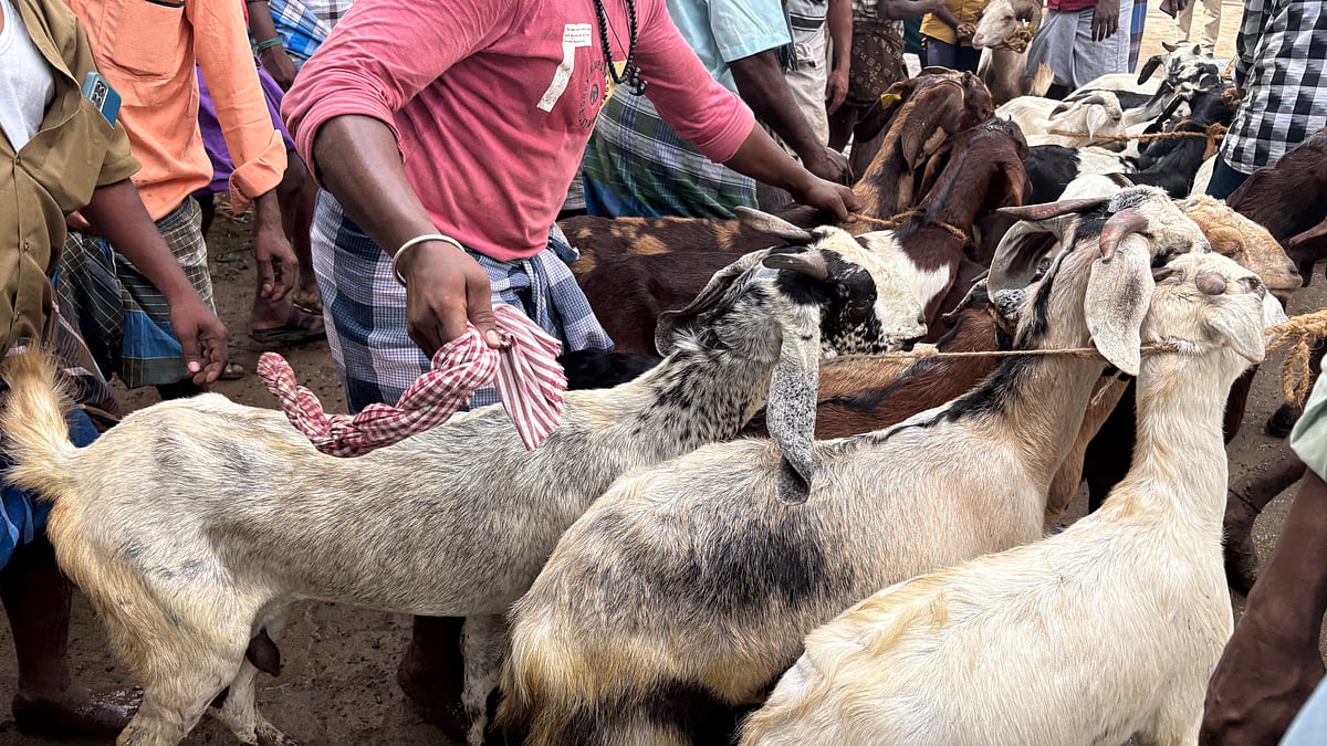 தீபாவளி : மதுரை திருமங்கலம் - உசிலம்பட்டி சாலையில் களைகட்டிய ஆட்டுச்சந்தை!
