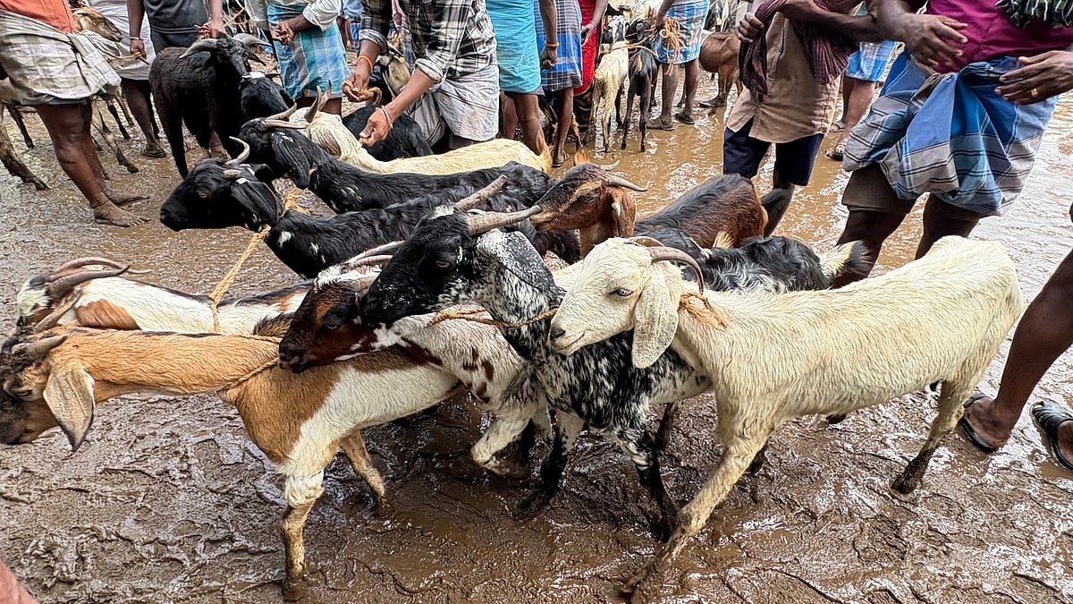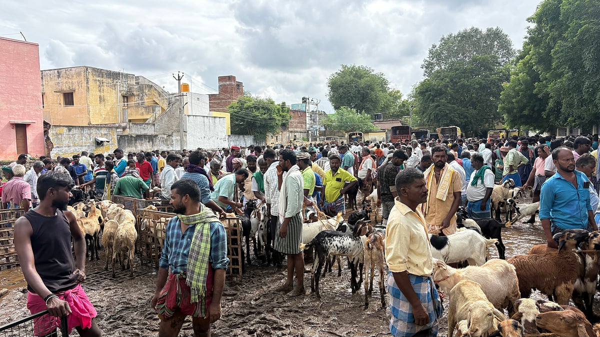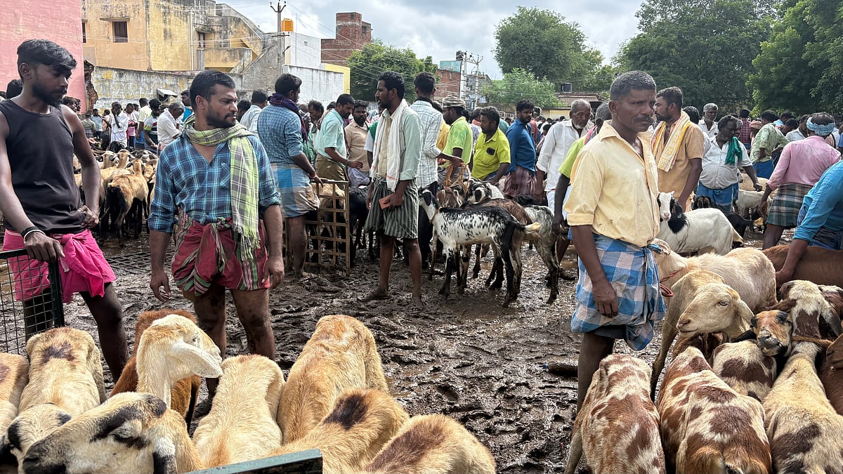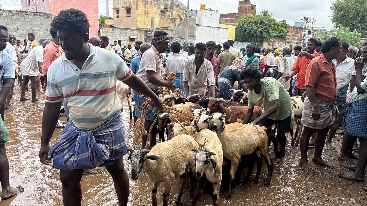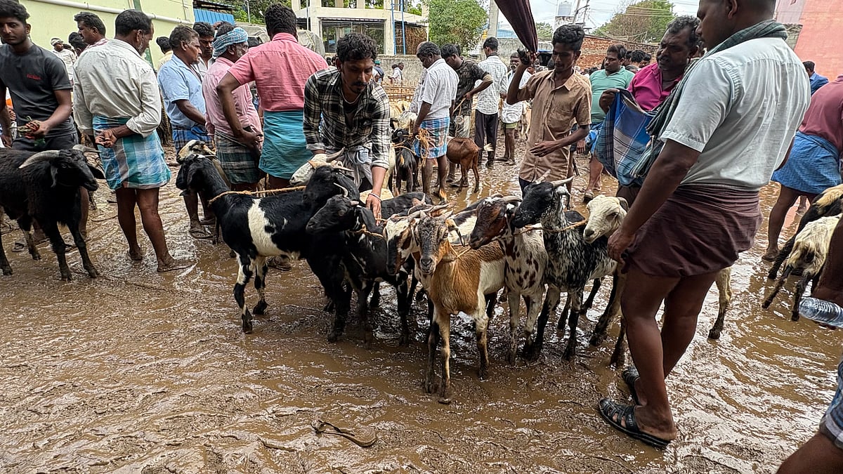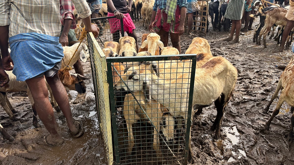 தீபாவளி : மதுரை திருமங்கலம் - உசிலம்பட்டி சாலையில் களைகட்டிய ஆட்டுச்சந்தை!