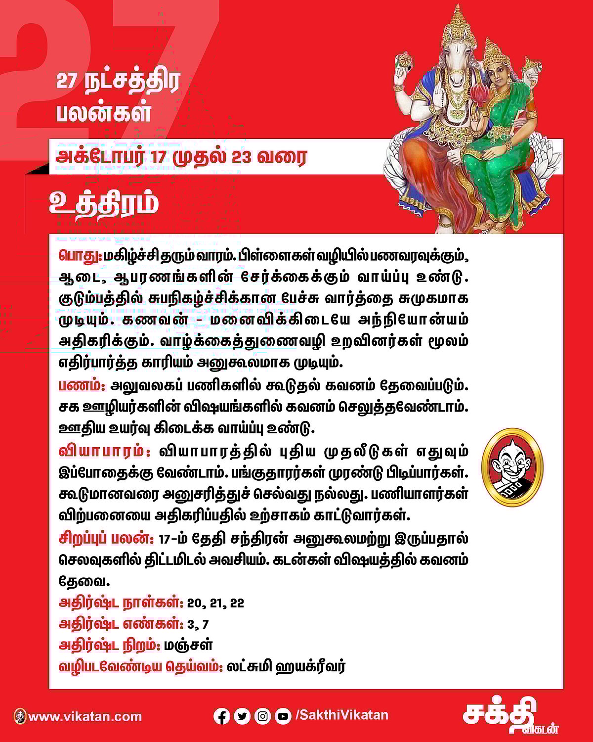 இந்த வார ராசிபலன் அக்டோபர் 14 முதல் 19 வரை #VikatanPhotoCards
