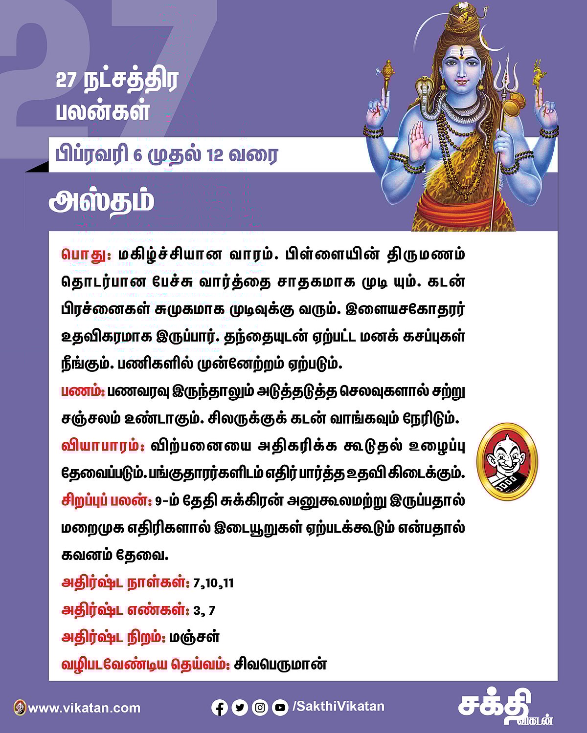 இந்த வார ராசிபலன் ஜனவரி 27 முதல் பிப்ரவரி 1 வரை #VikatanPhotoCards