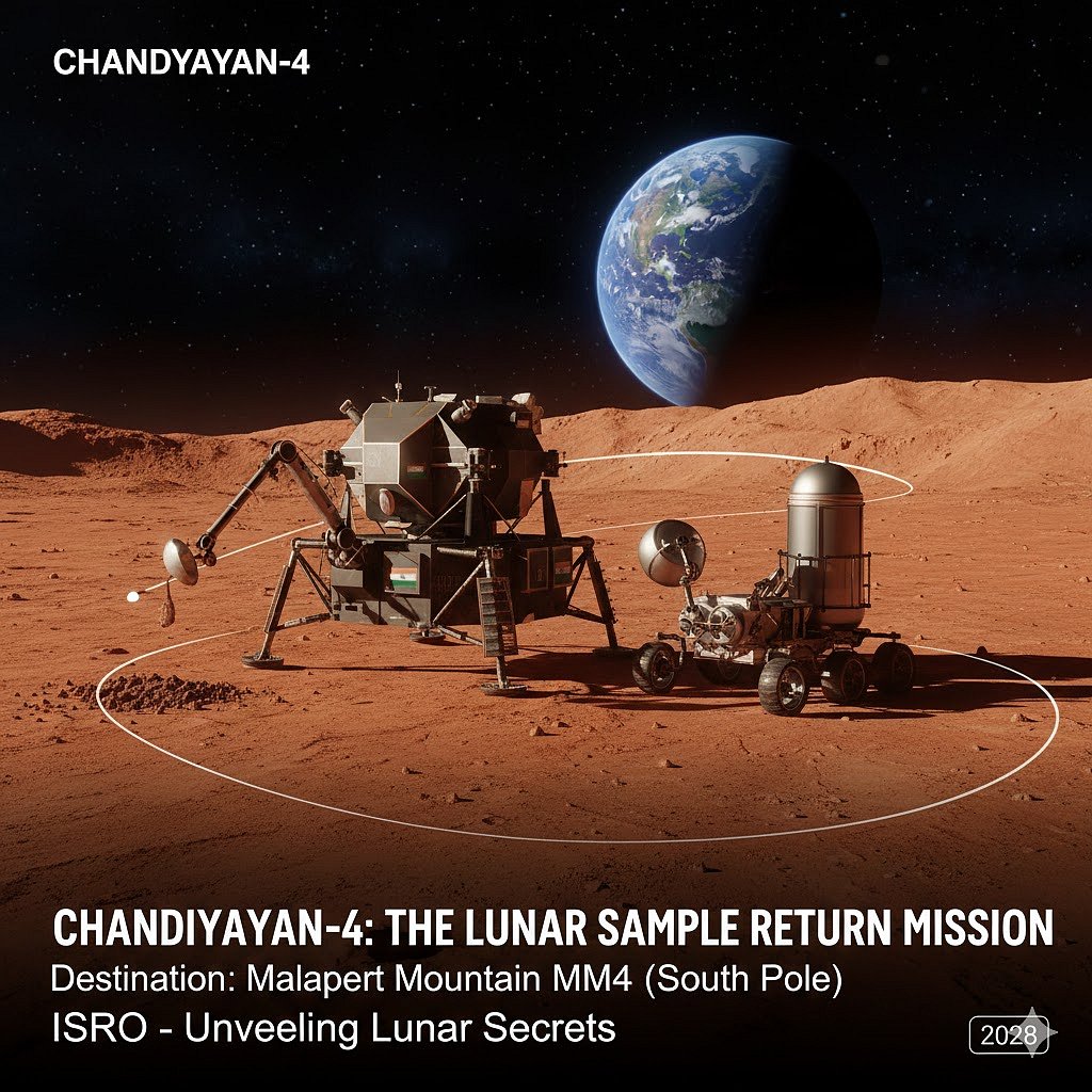 சந்திரயான் 4 நிலவுக்கு அனுப்பப்பட்டு, நிலவின் மாதிரிகளை சேகரித்து அதை பூமிக்கு அனுப்பும் இந்தத் திட்டம் குறைந்தபட்சம் இன்னும் இரண்டு ஆண்டுகளுக்குப் பிறகு 2028-ல்தான் தொடங்கப்படவுள்ளதாக இஸ்ரோ தலைவர் வி.நாராயணன் முன்பு கூறியிருந்தார்.