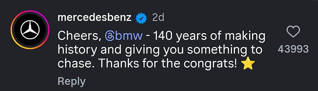 இதற்கு பென்ஸ் நிறுவனமும் நன்றி தெரிவித்து கமென்ட் செய்துள்ளது.