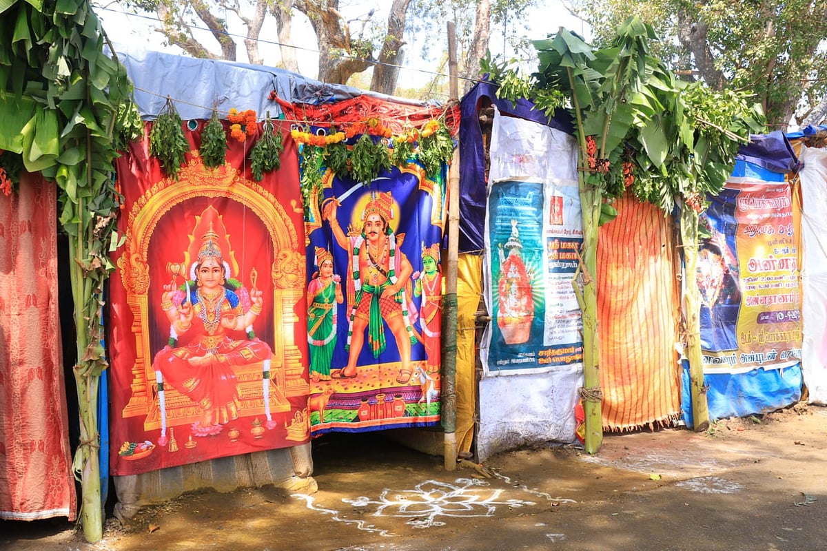 நான்கு நாட்களாக நடைபெறும் திருவிழாவில், முதல்நாள் நிகழ்வாக அதிகாலை 5 மணிக்கு காப்புக்கட்டுகிறார்கள். காப்புக் கட்டின் போது பொக்காபுர மாரியம்மனை குளத்திற்கு எடுத்துச் சென்று, அம்மனை நீராட வைத்து, அலங்காரம் செய்து கோவிலுக்கு எடுத்து வந்து வழிபடுகின்றனர்.