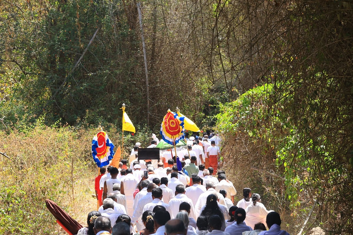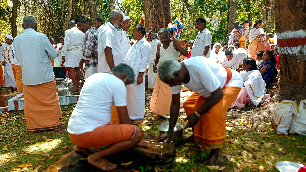 அதன்பின் திருவிழா நடத்தும் பழங்குடியின சமூகத்தினர் வாயில் வேப்பிலையை வைத்து பெட்டியில் இருக்கும் அம்மனை குளத்திற்கு எடுத்துச் செல்கின்றனர். அவ்வாறு அவர்கள் காட்டுப்பாதையின் வழி குளத்திற்கு அம்மனை எடுத்துச் செல்லும் போது அவர்களின் பாரம்பரிய உடையான வெள்ளை நிற ஆடைகளை அணிந்து பாரம்பரிய இசைக்கருவிகளை வாசித்து பாட்டுப்பாடிக்கொண்டே அம்மனை குளத்திற்கு எடுத்து சென்றனர்.