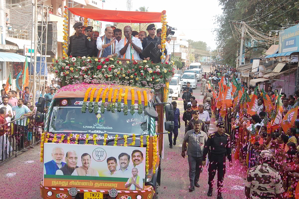 நெல்லை தேர்தல் பிரசாரப் பொதுக்கூட்டம்; ராகுல் காந்திக்கு செங்கோல், வாள் அளிப்பு | Photo Album