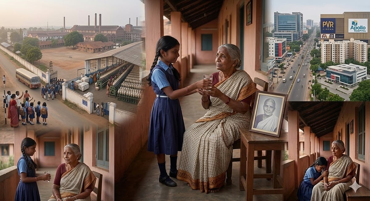 மில்லுத் தொழில்லே லாபம் பெருகப் பெருக தொழிலாளிகளுக்கு கொறஞ்ச வாடகையிலே வீடுகட்டிக் கொடுத்தாங்க. குழந்தைகள் படிக்க பள்ளிக்கூடம் கட்டுனாங்க. மேல் பள்ளிக்கூடம்போக பஸ் கொடுத்தாங்க.