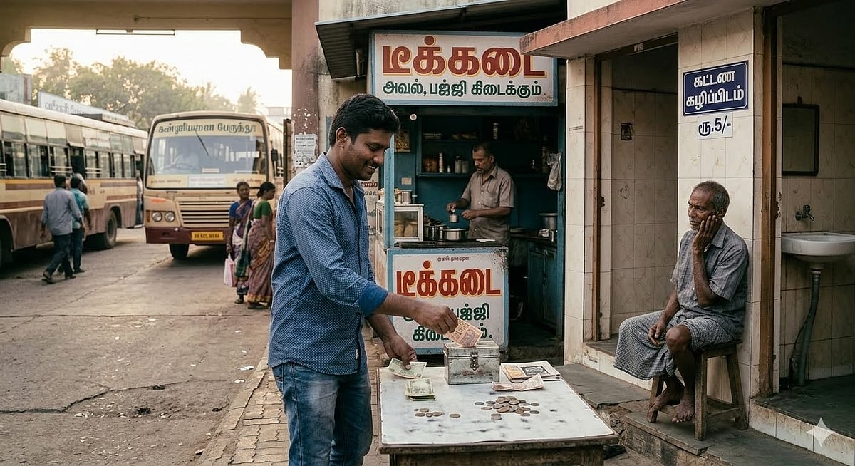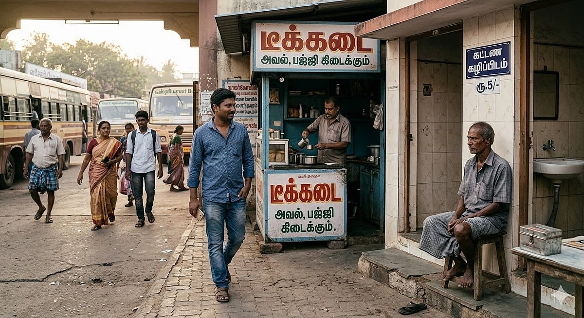 ஆட்கள் வரும் போது மட்டும் அந்த கிழவர் மேசை மீது ஒரு கண் வைத்துக் கொள்வார் அவ்வளவு நம்பிக்கையா என்று சற்று ஆச்சரியமாக தான் இருந்தது நானும் அதே பாணியில் 10 ரூபாய் நோட்டை வைத்துவிட்டு ரூ.5 எடுத்துக் கொள்ளும் பொழுது தாத்தா சிறிதாக தலையசைத்துக் கொண்டார் பொது கழிப்பிடம் தானே அதே போல தான் இருக்கும் என்பதுதான் உலக நீதி எல்லோருக்கும் பொறுப்புகள் இருக்கிறது அந்த பொறுப்புகள் இடத்திற்கு ஏற்ப மாற்றிக் கொள்கிறார்கள் பொறுப்புகள் சமநிலையில் இருந்தால் போதும் எல்லாரும் சமமாகிவிடுவார்கள் எல்லா கழிப்பறையும் சுத்தமாகிவிடும் இது கழிப்பறை விஷயத்தில் மட்டுமல்ல கல்வி கலாச்சாரம் என எல்லா விஷயத்திலும் பொருந்த தான் செய்கிறது.காலை கடனை அடைத்துவிட்ட பிறகு வெளியே வந்தேன் டீக்கடைக்கு அடி எடுத்தேன். எப்போதும் ஊரிலிருந்து வரும்பொழுது ஒரே டீக்கடை தான் பேருந்து நிலையத்திலிருந்து சந்தைக்கு நுழையும் பாதையில் முதல் கடை தான் அந்த கடை.