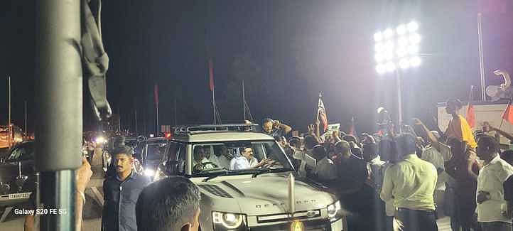 ராமநாதபுரத்துக்கு வியாழக்கிழமை வந்த தமிழக முதல்வா் மு.க.ஸ்டாலினுக்கு திமுகவினா் மாவட்ட எல்லையான பாா்த்திபனூரில் உற்சாக வரவேற்பு அளித்தனா்.