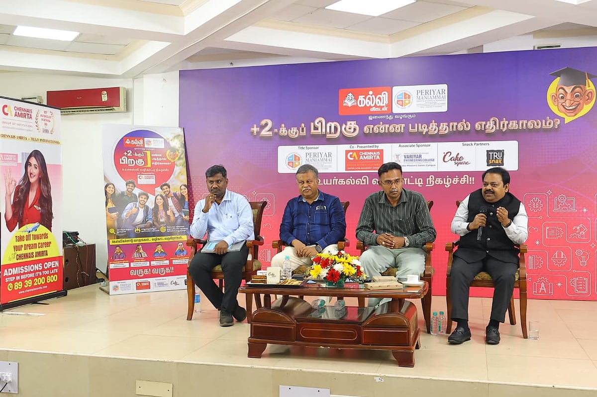 இந்தக் குழப்பங்களுக்கு முற்றுப்புள்ளி வைக்கவும், எதிர்காலப் பாதையைத் திட்டமிடவும் கல்வி விகடன் மற்றும் பெரியார் மணியம்மை அறிவியல் மற்றும் தொழில்நுட்ப நிறுவனம் இணைந்து நடத்திய வழிகாட்டி முகாம் சென்னையில் சீரோடும் சிறப்போடும் இன்று (25.04.2026) நடைபெற்றது.