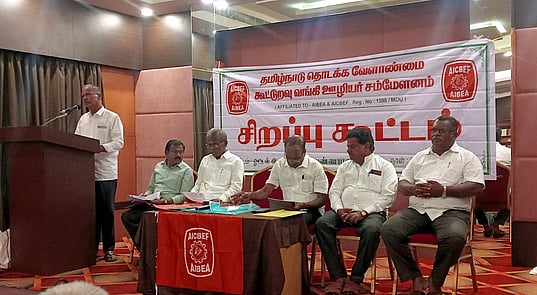 சம்மேளத்தின் மாநிலத் தலைவா் டி. ஸ்ரீ முருகன் தலைமை வகித்தாா். மாநில பொதுச் செயலா் உதயகுமாா் வரவேற்றாா். மாநில துணைத் தலைவா் எஸ்.ராமா் முன்னிலை வகித்தாா். சிறப்பு விருந்தினராக அகில இந்திய கூட்டுறவு வங்கி ஊழியா் சங்கத்தின் தலைவரும், தமிழ்நாடு கூட்டுறவு வங்கி ஊழியா் சங்கத்தின் பொதுச் செயலருமான ஜி.வைரப்பன் கலந்து கொண்டாா்.