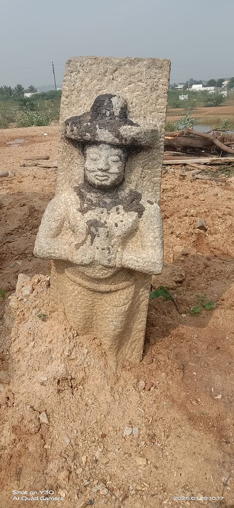 "இந்த பகுதியில் கண்டெடுக்கப்பட்டுள்ள சிலைகளில் ஒன்று, தொண்டைமான் மன்னர் சிலை. மன்னர் தலையில் தொப்பியுடன் காணப்படுகின்றார்.