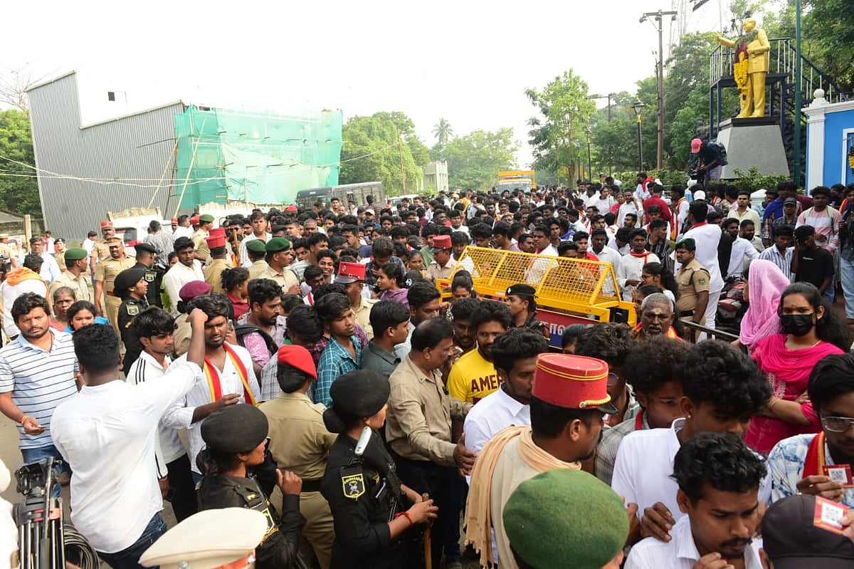 தமிழக வெற்றிக் கழகத்தின் தலைவர் விஜய் கடந்த அக்டோபரில் கரூரில் பிரசாரம் மேற்கொண்டபோது 41 பேர் கூட்ட நெரிசலில் சிக்கி உயிரிழந்த பிறகு வெளியில் பரப்புரை, சுற்றுப்பயணம், பிரசாரம் என எதையும் அவர் மேற்கொள்... மேலும் பார்க்க