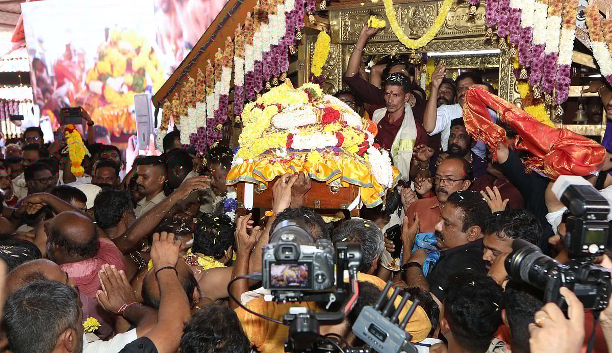 மண்டல பூஜை: சபரிமலை ஐயப்ப சுவாமிக்குச் சாத்தும் தங்க அங்கி ஒப்படைக்கப்பட்ட காட்சி! | Photo Album