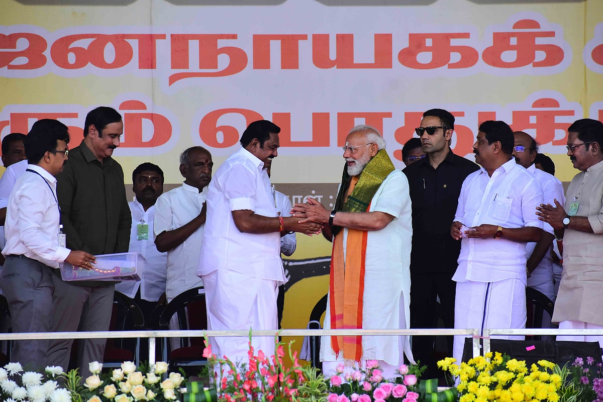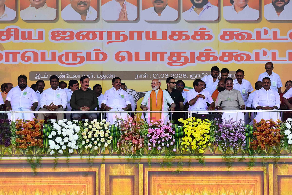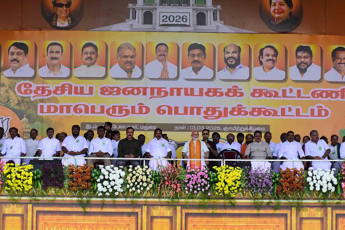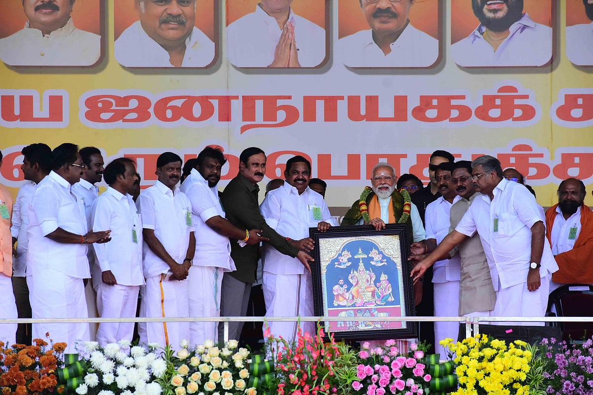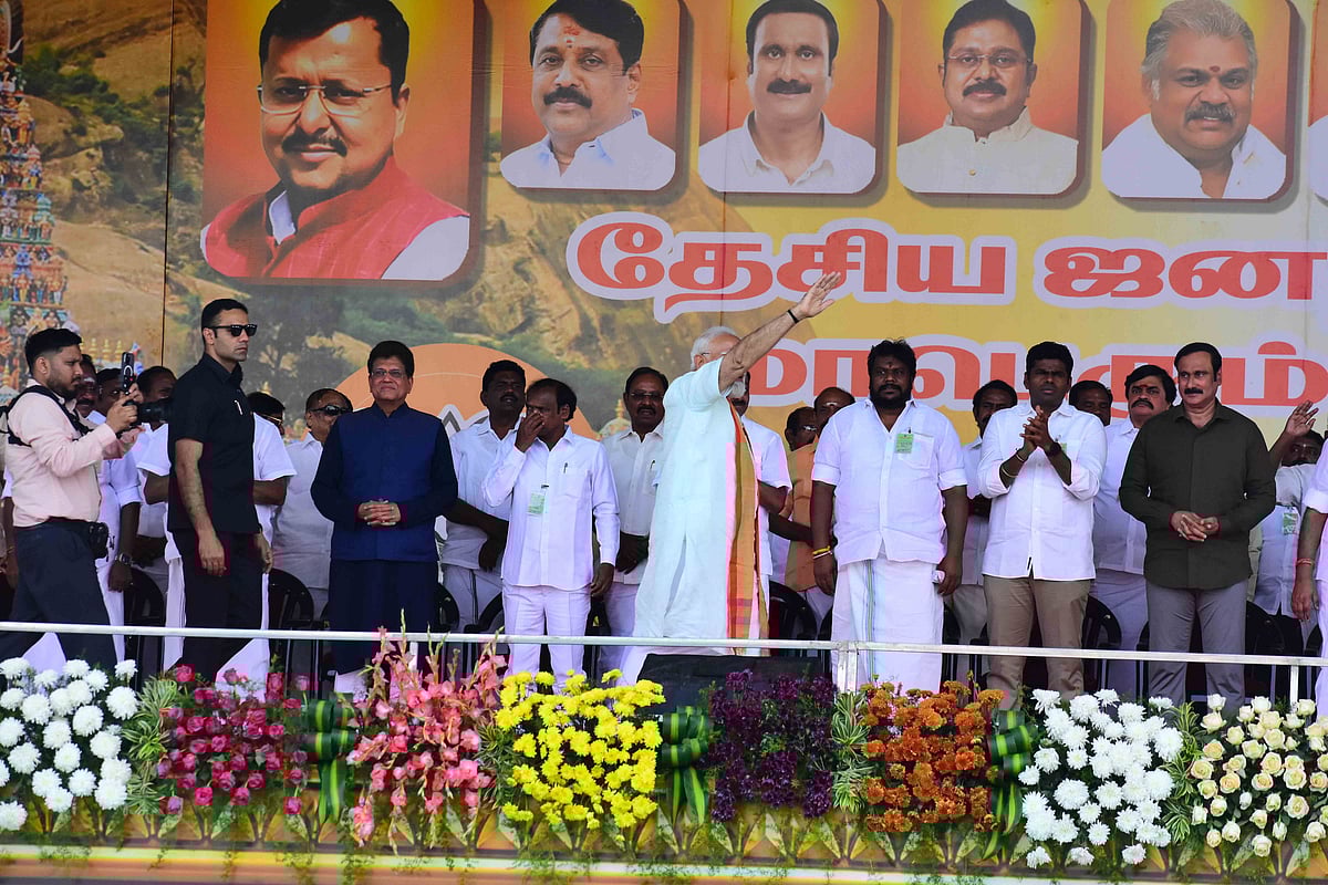 மதுரை தேசிய ஜனநாயகக் கூட்டணி மாநாடு: கைகோத்த கூட்டணிக் கட்சித் தலைவர்கள் | Photo Album