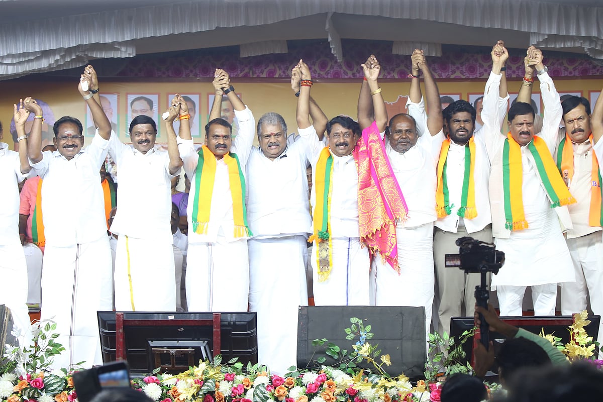 நேற்று மாலை மதுரை அண்ணா நகரில் நடைபெற்ற பிரசாரப் பயணம் தொடக்க விழாவில் மத்திய அமைச்சர் எல்.முருகனுடன், கூட்டணி கட்சித் தலைவர்கள் ஜி.கே.வாசன், செல்லூர் ராஜூ, ராஜன் செல்லப்பா, ஆர்.பி.உதயகுமார், அண்ணாமலை, பொன் ராதாகிருஷ்ணன், ஹெச்.ராஜா, வானதி சீனிவாசன் உள்ளிட்ட பாஜக நிர்வாகிகளும் கலந்துகொண்டனர்.