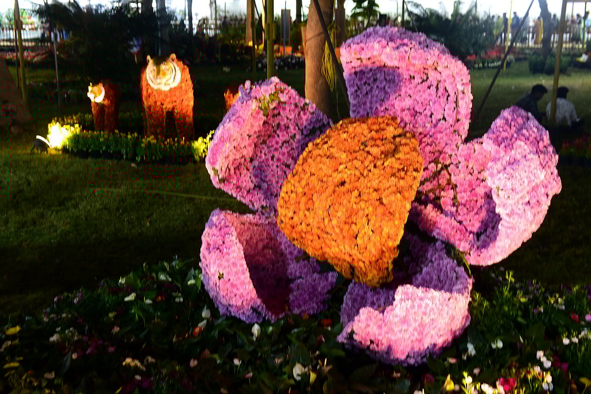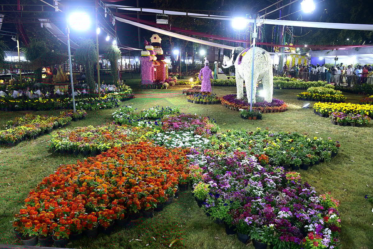 மலர்களாலான யானை முதல் பீரங்கி வரை.! புதுச்சேரி மலர் கண்காட்சியை ரசித்த மக்கள்!