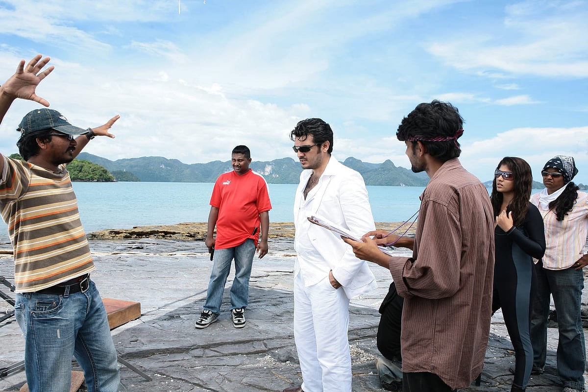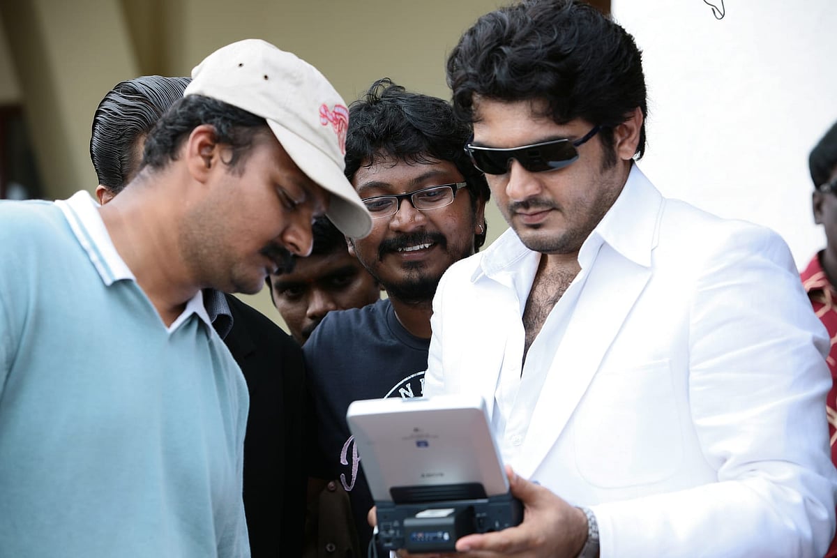 ஆனா, அஜித் சார் அதை அழகா ஹேண்டில் செய்தார். 'சேவற்கொடி பறக்குதடா' பாடலில் நீங்கள் பார்க்கும் கூட்டம் உண்மையான மக்கள் கூட்டம். பாடலை படமாக்கும்போதே அங்கிருந்தவர்களிடம் 'நீங்கள் தாராளமாக இங்கு நின்று நடப்பத்தைப் பார்க்கலாம், நடுவில் வந்து சிரமம் தராதீர்கள்' என்றேன். இதையே அஜித் சாரும் சொன்னார். அவர் சொன்னவுடன் அத்தனைப்பேரும் அதை பின்பற்றினார்கள். அவ்வளவு பெரிய கூட்டத்தை ஒரே வரியில் அமைதிப்படுத்தி எங்களை அதிர்ச்சியில் ஆழ்த்திவிட்டார். சில சமயங்களில் படப்பிடிப்பு தளத்திலேயே அவரது போர்ஷன் இல்லாத சமயங்களில் தெர்மாகோல் விரித்துப் அதிலேயே படுத்துவிடுவார். அப்படி ஒரு எளிமை.