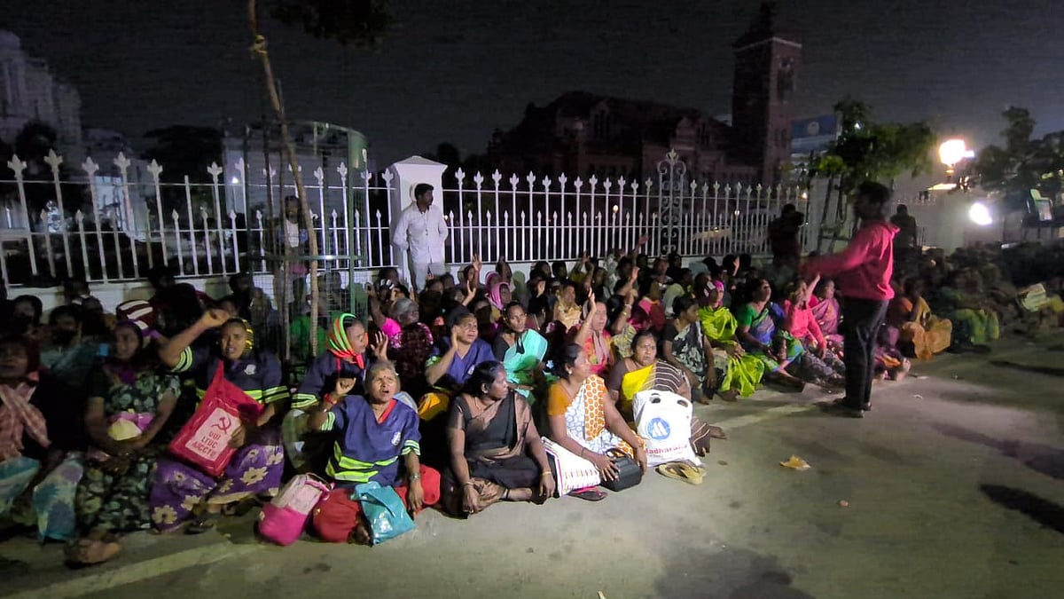 தனியார்மயமக்கலை எதிர்த்தும் பணி நிரந்தரம் வேண்டியும் தொடர் போராட்டங்களை முன்னெடுத்து வரும் தூய்மைப் பணியாளர்கள் மீண்டும் ரிப்பன் மாளிகைக்கு வெளியே அமர்ந்து போராட்டத்தை தொடங்கியிருக்கின்றனர்.