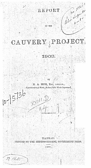 இதனைத் தொடர்ந்து எச்.ஏ. மோஸ் 1904-ல் விரிவான அறிக்கையைத் தயாரித்தார். அவர், 130 அடி உயரம் கொண்ட, 40,000 மில்லியன் கனஅடி கொள்ளளவு உள்ள நீர்த்தேக்கத்தை, நெரிஞ்சிப்பேட்டையிலிருந்து வடக்கே 3 மைல் தூரத்தில் அமைக்க முன்மொழிந்தார்.