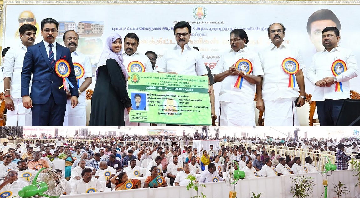 ராமநாதபுரம் மாவட்டத்தில் வெள்ளிக்கிழமை நடைபெற்ற அரசு விழாவில் ரூ. 737.88 கோடி செலவிலான 109 முடிவுற்ற திட்டப் பணிகளை திறந்து வைத்தும், 150 புதிய திட்டப் பணிகளுக்கு அடிக்கல் நாட்டியும், 50,752 பயனாளிகளுக்கு அரசு நலத்திட்ட உதவிகளையும் முதல்வர் மு.க.ஸ்டாலின் வழங்கினார்.