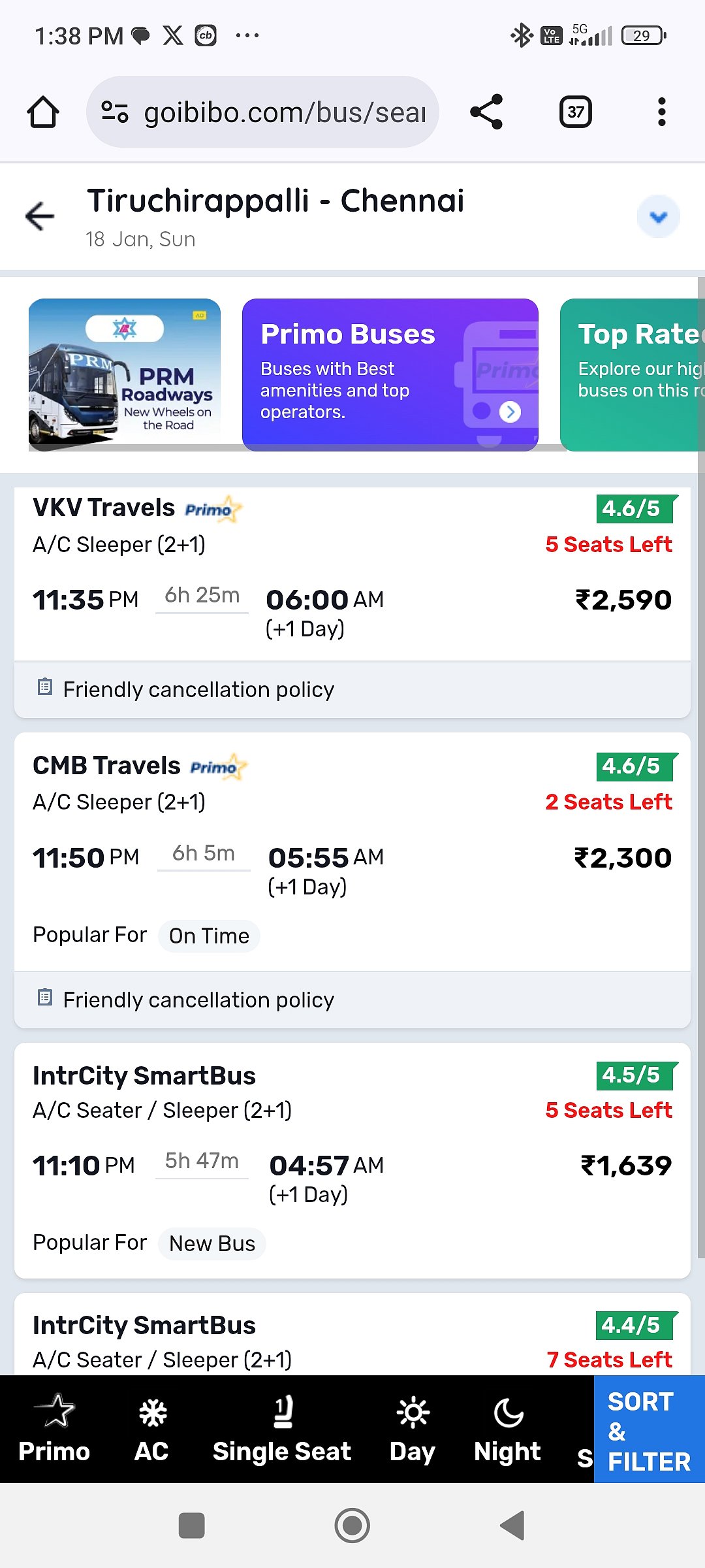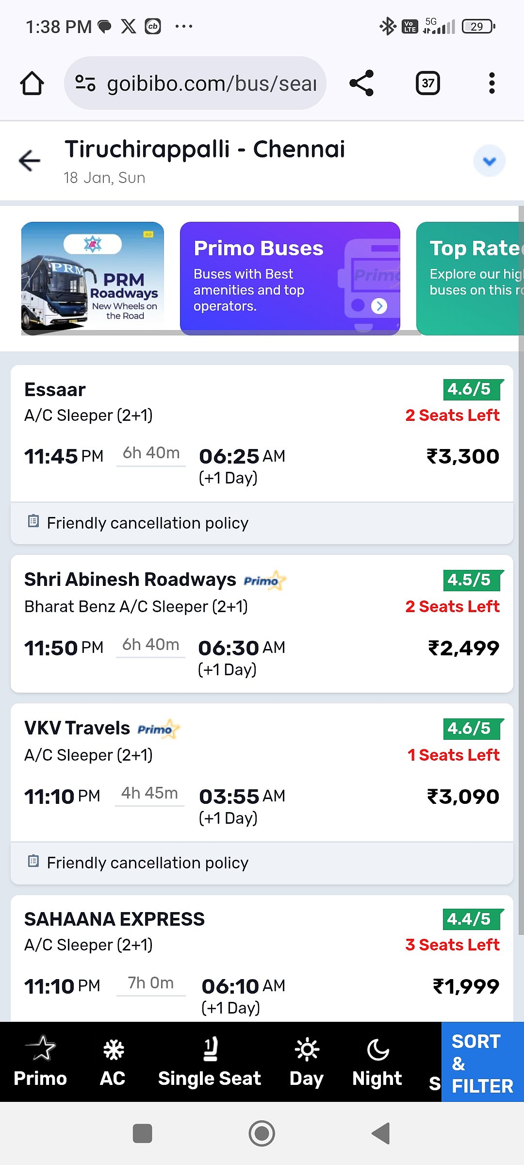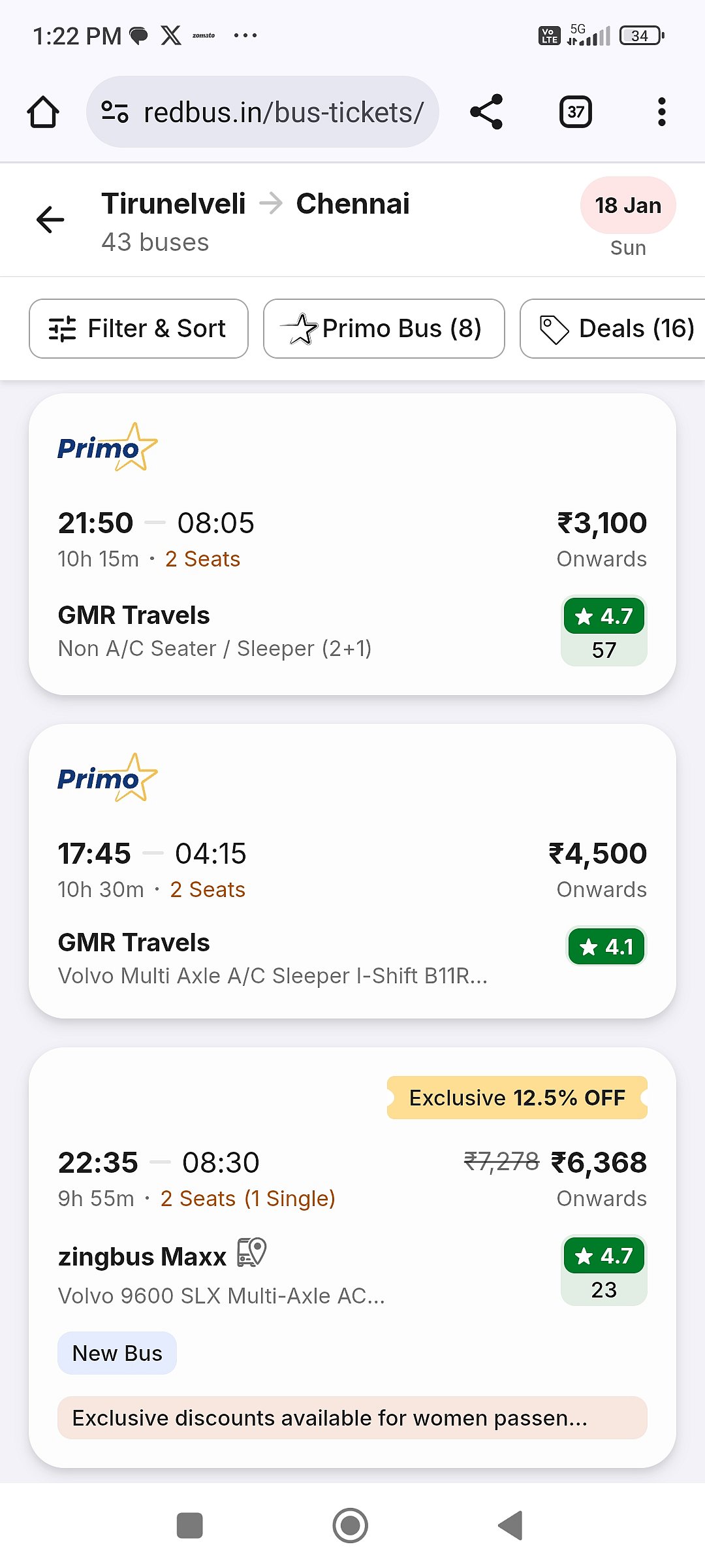 படுக்கைவசதியுடன் கூடிய இருக்கைக்கான டிக்கெட் குறைந்தபட்சமாக 3500 ரூபாயிலிருந்து 7500 ரூபாய்க்கும் விற்கபட்டு வருகிறது. அதேமாதிரி, மதுரையிலிருந்து சென்னைக்கான ஆம்னி பஸ்களின் டிக்கெட்டும் குறைந்தபட்சமாக 2500 ரூபாய் முதல் 4500 ரூபாய் வரைக்கும் விற்கப்பட்டு வருகிறது. திருச்சியிலிருந்து சென்னைக்கு குறைந்தபட்சமாக 1800 ரூபாய் முதல் 3500 ரூபாய் வரைக்கும் டிக்கெட் விற்கப்படுகிறது. கோயம்புத்தூரிலிருந்தும் குறைந்தபட்சமாக 2000 ரூபாய் முதல் 4000 ரூபாய் வரைக்கும் டிக்கெட்டுகள் விற்கப்படுகிறது.