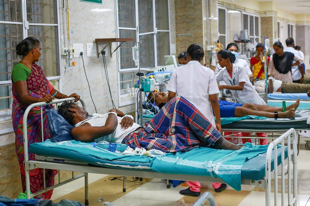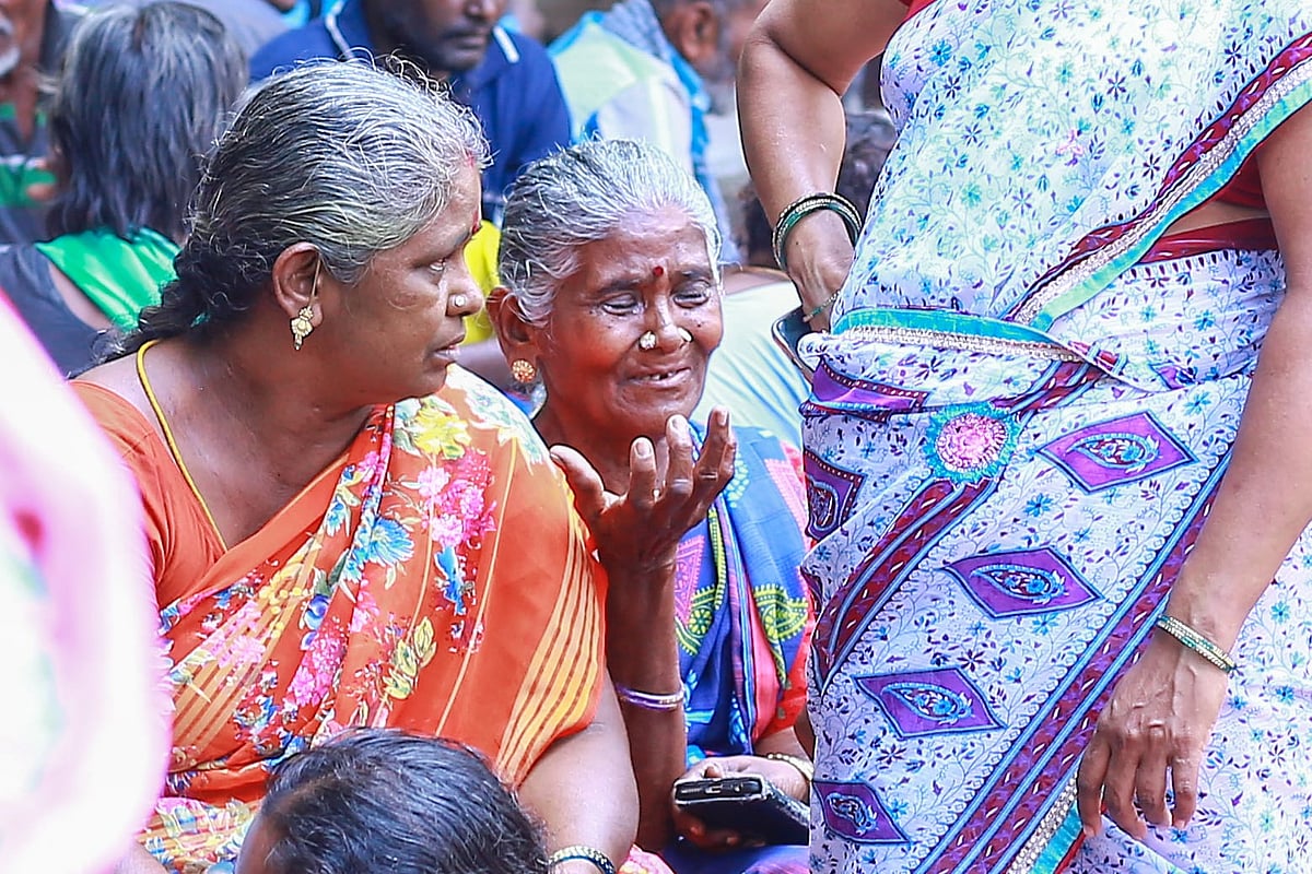 ஆய்வில் இருந்த மாவட்ட ஆட்சியர் சுகபுத்ராவை போலீஸார் பாதுகாப்பாக அழைத்துச் சென்றனர். இதில், சேர்வைகாரன்பட்டி என்ற ஒரே கிராமத்தைச் சேர்ந்த 18 பேர் உயிரிழந்தது பெரும் சோகத்தை ஏற்படுத்தியுள்ளது.