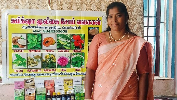 மயிலாடுதுறை மாவட்டம் கொள்ளிடம் அடுத்த அனுமந்தபுரம் பகுதியைச் சேர்ந்தவர் உஷா ராணி(45). ஏ.என்.எம் முடித்த இவரோ தற்போது மூலிகை சோப்பு, மூட்டுவலி தைலம், ஹெர்பல் டை போன்ற 18- க்கும் மேற்பட்ட பொருட்களை தயாரித்து தமிழ்நாட்டின் பல்வேறு மாவட்டங்களிலும் விற்பனை செய்து, மயிலாடுதுறை மாவட்டத்தின் வளர்ந்து வரும் தொழிலபதிராக திகழ்கிறார்.