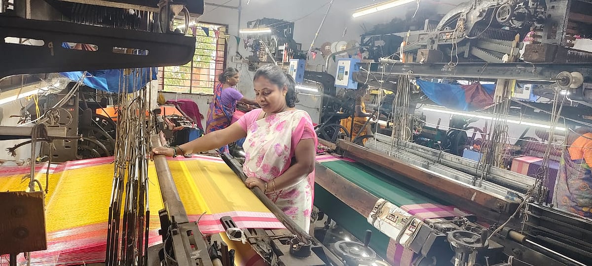 கள்ளக்குறிச்சி மாவட்டம், எல்ராம்பட்டு கிராமம். பவர்லூம் பொருத்தப்பட்டிருந்த அந்த வீட்டில் இடைவிடாமல் தறியின் சத்தம் ஒலித்துக் கொண்டே இருந்தது. மற்றொரு புறம் சேலைகளை மடிப்பதிலும் பேக்கிங் செய்வதிலும் பெண்கள் பிஸியாக இருந்தார்கள்.