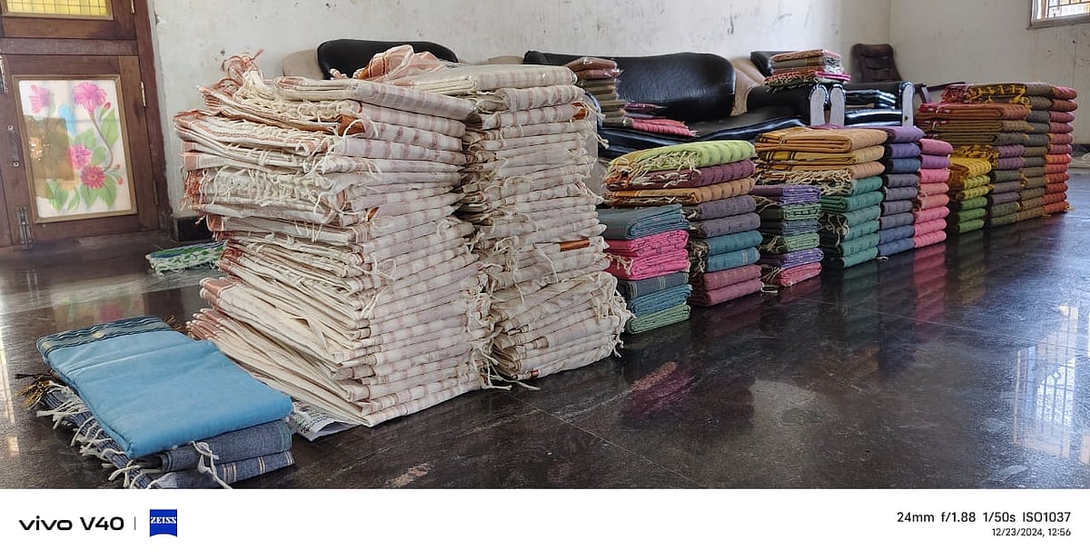 "கைத்தறி நெசவு என் வீட்டுக்காரரோட குடும்பத் தொழில். எனக்கு கல்யாணம் ஆனதுக்கு அப்புறம் அவர்கூட சேர்ந்து நானும் நெசவுத் தொழில் பண்ண ஆரம்பிச்சேன். எங்களுக்கு ஒரு மகன். அவனும் தறி நெசவுலதான் இருந்தான். மகனுக்கு கல்யாணம் ஆகி பேரன் பேத்தியெல்லாம் பொறந்த பிறகு குடும்பத்துல செலவுகள் அதிகமாச்சு. ஆனா, எங்க வருமானம் உயர்ந்தபாடில்ல.கைத்தறி நெசவு பண்ணும்போது கூட்டுறவு சங்கத்திலிருந்து நூல் கொடுப்பாங்க. நாங்க நெசவு பண்ணி புடவையா கொடுப்போம். அதுக்குக் கிடைக்கிற கூலி ரொம்ப குறைவு…