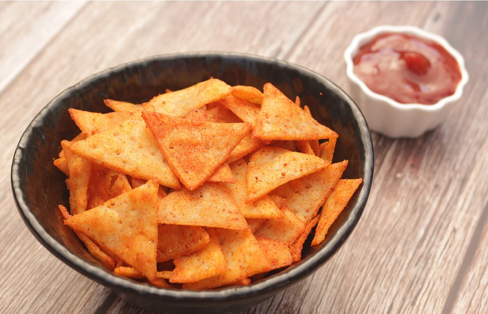 பின்னர் இந்த சப்பாத்தியை சிறிய, சிறிய முக்கோண வடிவங்களாக நறுக்கிக்கொள்ளவும். பின்பு இவற்றை சூடான எண்ணெயில் பொன்னிறமாகப் பொரித்தெடுக்கவும். பொரித்தெடுத்தவற்றின் மேல் உப்பு, காஷ்மீர் மிளகாய்த்தூள், சாட் மசாலாத்தூள் தூவி சூடாகப் பரிமாறவும்.