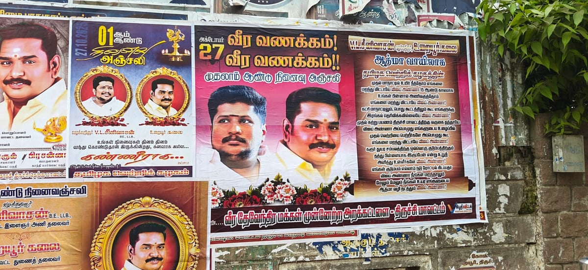 அதனை முன்னிட்டு, 'வீர தேவேந்திர மக்கள் முன்னேற்ற அறக்கட்டளை' என்கிற பெயரில் திருச்சி மாவட்டத்தில் பல்வேறு பகுதிகளில் போஸ்டர்கள் ஒட்டப்பட்டுள்ளது. அந்த போஸ்டர்களில், இருவரின் ஆத்மாக்கள் பேசுவது போல் வசனங்கள் எழுதப்பட்டுள்ளது.