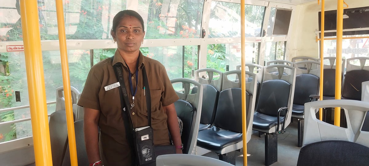 "நான் பிறந்து வளர்ந்ததெல்லாம் தென்காசி மாவட்டம், தென்மலை துரைச்சாமியபுரம். திருநெல்வேலி சைல்ட் ஜீசஸ் பெண்கள் பள்ளியில் ஹாஸ்டலில் தங்கி பிளஸ் டு வரைக்கும் படிச்சேன். நான் 2015-லேயே கண்டக்டர் லைசென்ஸ் வாங்கி வச்சுட்டேன். நான் கனரக வாகனங்களும் ஓட்டுவேன். அதுக்கான லைசென்ஸும் வச்சிருக்கேன். 2015-ல் இந்தப் பணிக்கு அப்ளை பண்ணினேன். ஆனால் கிடைக்கல. இனிமே எப்படா இன்டர்வியூ வைப்பாங்கன்னு 10 வருஷம் காத்திருந்து, இந்த வேலைக்கு வந்தேன். கண்டக்டர் வேலை கிடைக்கிற வரைக்கும் மில்லுல வேலை பார்த்துட்டு இருந்தேன்." என்றவரிடம், நடத்துனர் பணியின் அனுபவத்தைப் பற்றி கேட்டோம்.