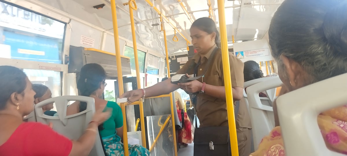 "நான் எட்டாம் வகுப்பு படிக்கும் போதிலிருந்தே.... ஃபியூச்சர்ல பஸ் கண்டக்டரா ஆகணும்னு நினைச்சேன். எல்லாரும் பண்ற மாதிரி இல்லாம தனித்துவமா இருக்கணும்னுதான் இந்தப் பணியை தேர்ந்தெடுத்தேன். கண்டக்டர் ஆகணுங்கிறது எனக்கு 20 வருஷக் கனவு. நான் வேலைக்குச் சேர்ந்து ரெண்டு மாசம் ஆச்சு. எனக்கு இப்போ 38 வயசு ஆகுது. நான் என் வாழ்நாளிலேயே இந்த ரெண்டு மாசத்துலதான் ரொம்ப சந்தோஷமா இருக்கேன்." என்று சொல்லிக்கொண்டிருக்கும்போதே, 'போலாம் ரைட்' என்று கணீரென விசில் அடித்துவிட்டு, மீண்டும் பேசத்தொடங்கினார்.